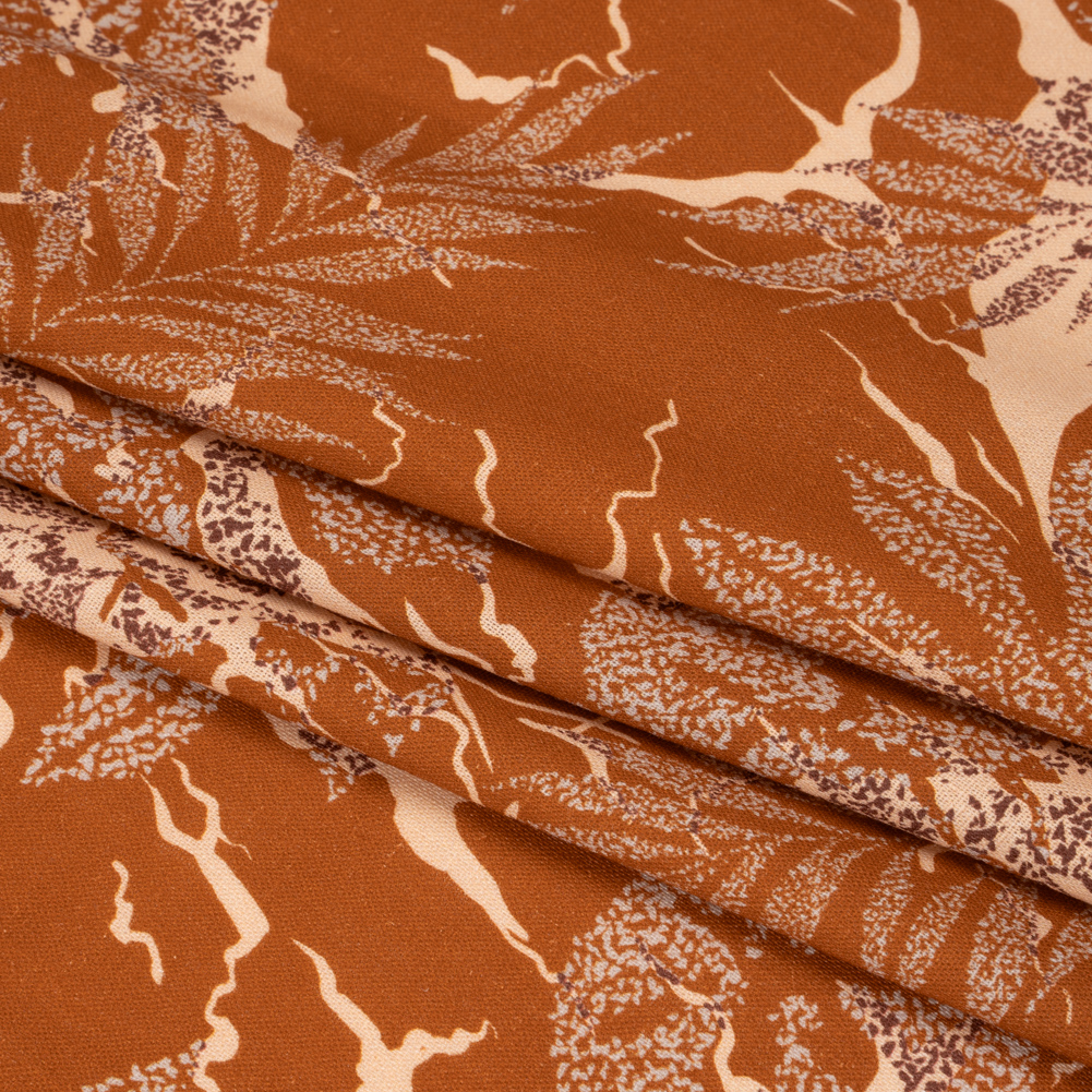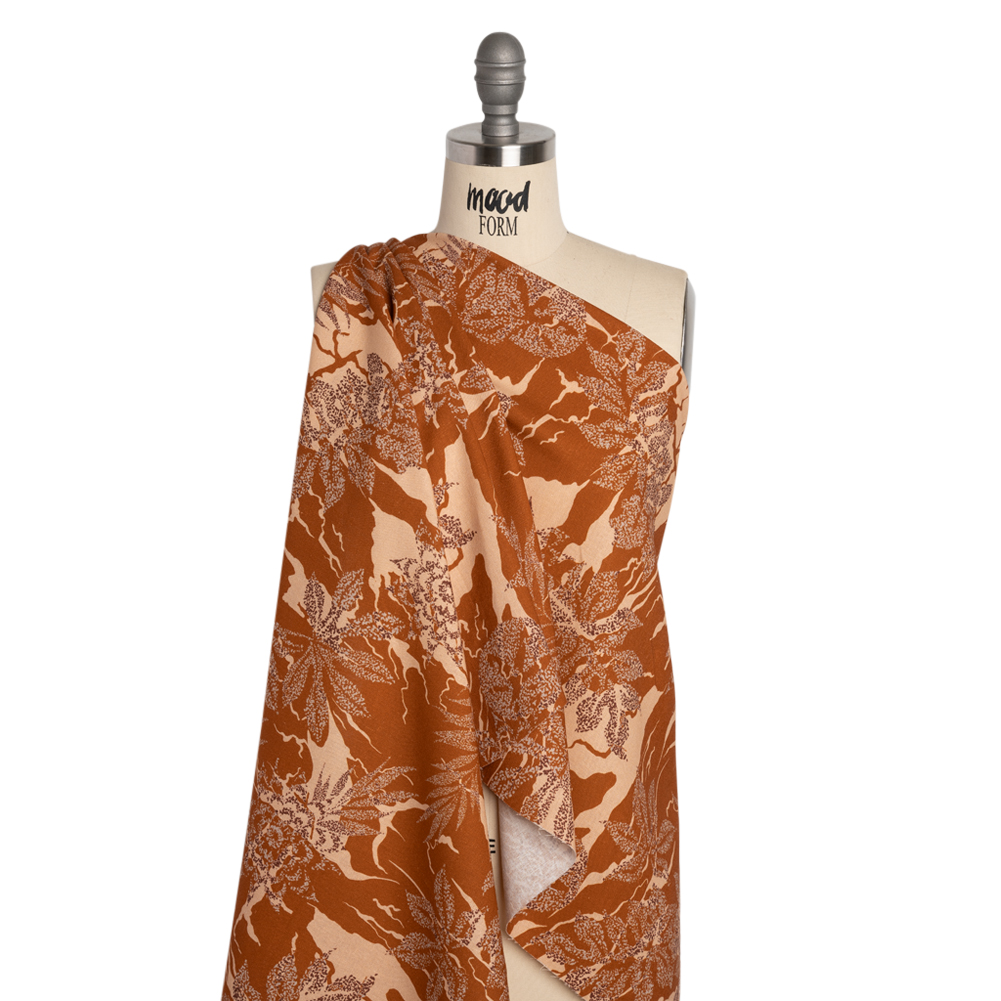 Linen and Rayon Woven Print - Brown and Beige Floral - Mood Exclusive Fossilized Memories