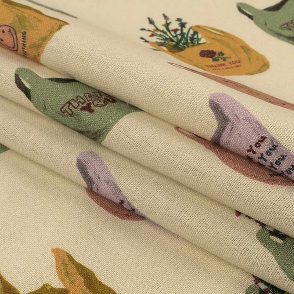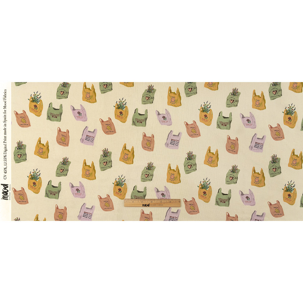 Shop til you drop, and when you're done you'll find yourself with a collection of bags all expressing the same “Thank you, thank you, have a nice day” (plus one cheeky “thanks for nothing”). Our Mood Exclusive Come Again Soon Linen and Rayon Woven collects those bags for your enjoyment on something a little more sustainable—may we suggest you make some meta market bags? A derivative of The Wisteria Collection, this astonishingly sumptuous fabric will have you in awe of its excellence. Soft and silken in hand, the linen and rayon blend boasts a subtle luster throughout. Of a medium weight and without stretch, utilize its voluminous, malleable drape to fashion anything from casual shirts and jackets to more sophisticated pinafore skirts and cigarette pants. Swing by our Mood Sewciety Blog to take a glance at our free Cress Skirt, Perilla Jumpsuit, Primrose Pants, Ash Pants, and Piper Shorts sewing patterns for inspiration.MoodEarth Verified: This fabric is composed of viscose fibers derived from suppliers ranked as Green Shirt by Canopy, earned with attention to sustainable wood and pulp sourcing, backed by efforts to conserve critical forests. For more information on Mood's sustainability initiatives, check out MoodEarth here.Please Note: Due to the nature of linen, the print may feature white speckles throughout.
