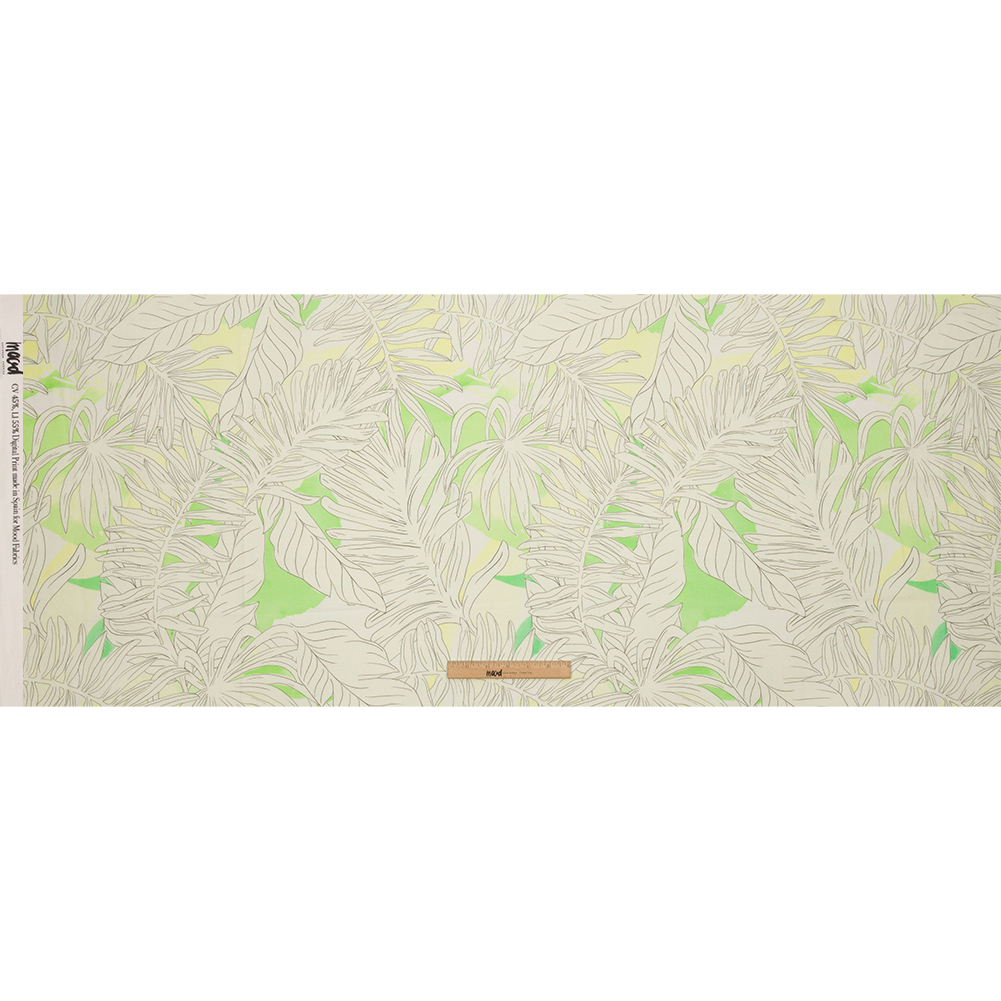 Linen and Rayon Woven – White and Pale Green Leaves – Under the Boardwalk Print – Mood Exclusive Palm Beach Collection
