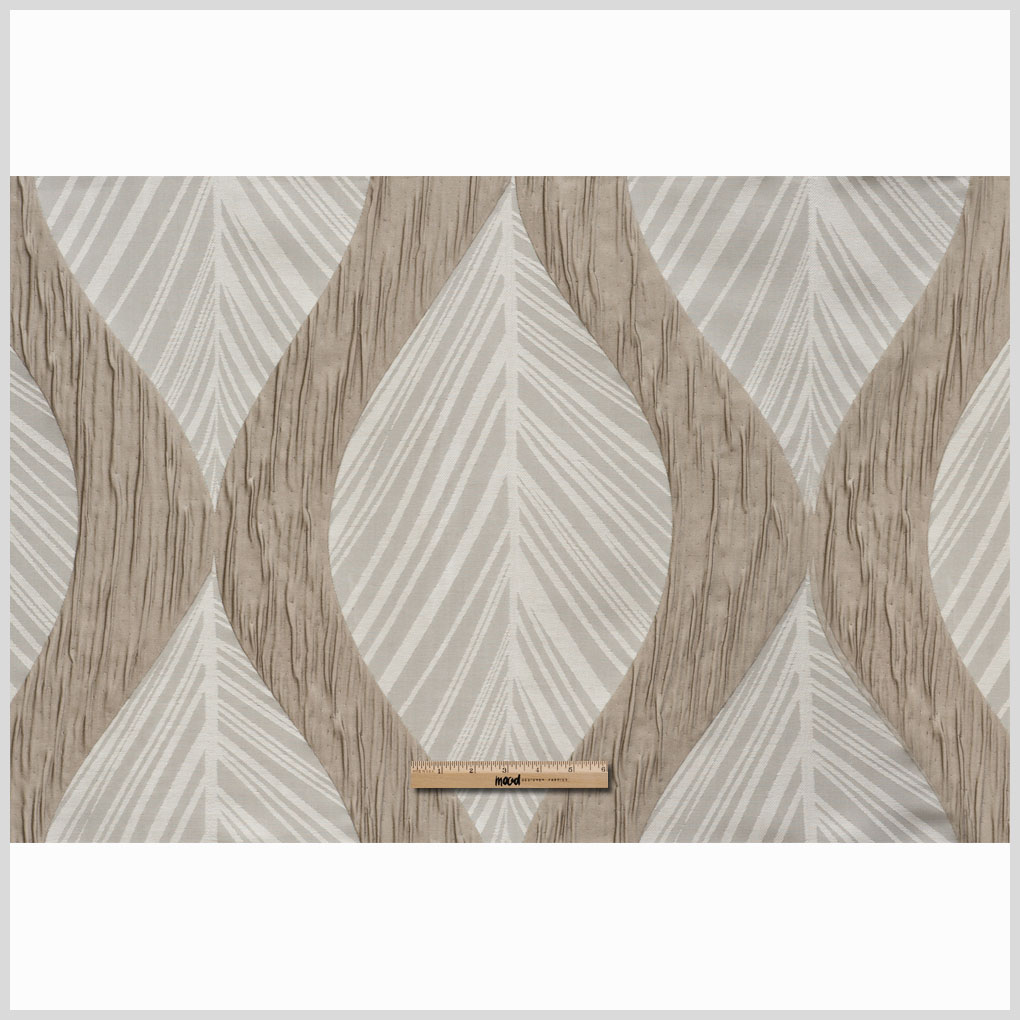 An elegant polyester home fabric from England. Dramatic leaves juxtaposed against a rippled background. Perfect for lightweight upholstery, curtains, pillows and more.