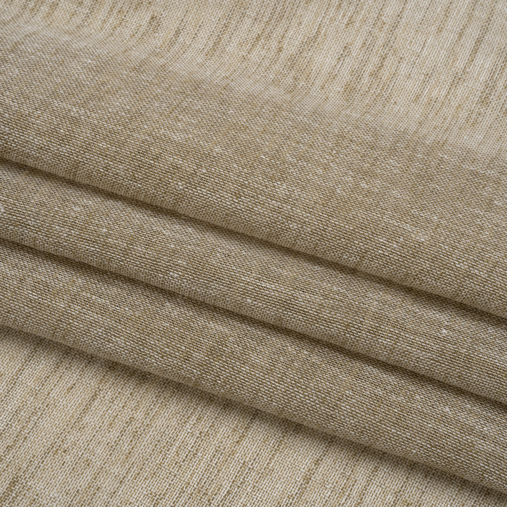 Made with recycled polyester, this Olive Linen Look Drapery Sheers Woven fabric is double-wide, measuring 118 inches. Its slubbed texture and heathered appearance mimic the relaxed look of linen.Suggested Projects: Drapery SheersContent: 51% Recycled Polyester, 49% PolyesterStretch: NoneOpacity: SheerBring this subdued olive green fabric into your home! It has a grainy hand, supple drape, and a lightweight. Rustic in appearance, the open weave creates a gridded, net-like structure on the face, highlighted by subtle slubs to promote down-to-earth creations that resemble linen. Whether adding dimension to your curtains and valances, softening your window treatments, or handling even your largest drapery projects, its double-wide measurements are key to perfecting every aspect of your space. Some sewing tips for this delicate fabric include: Longer stitch lengths often work best, as they help prevent the fabric from getting caught in your machine. As always, we suggest testing on a scrap first (you might need to adjust tension settings, too).As it frays easily, you will want to finish your seams with a serger, French seams, or an overlock stitch.