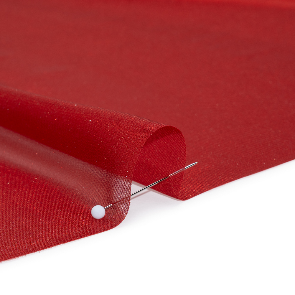 Your texts won’t be left on red when you wear this Red on Red Liquid Sheen Metallic Polyester Chiffon—featuring a dry, grainy hand and fluid drape.Suggested Projects: Dresses, Skirts, Shirts, BlousesContent: 100% PolyesterStretch: NoneOpacity: SheerA red metallic sheen shimmers like moonlight and pixie dust atop this red chiffon, casting an enchantment over its airy weave. Light as a whisper with a fluid, graceful drape, it’s destined for gowns that glide like mist, floaty summer dresses that catch every breeze, airy scarves, and delicate blouses worthy of a fairytale dawn. Sheer and ethereal, consider adding a lining if your design calls for added opacity or shape as you bring your magical vision to life.
