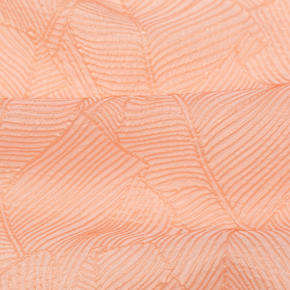 Seas the limitless possibilities of this Luminous Coral Double-Layer Organza! A charming coral foliage design spans the entirety of this material in a monochromatic thicket of tropical leaves.