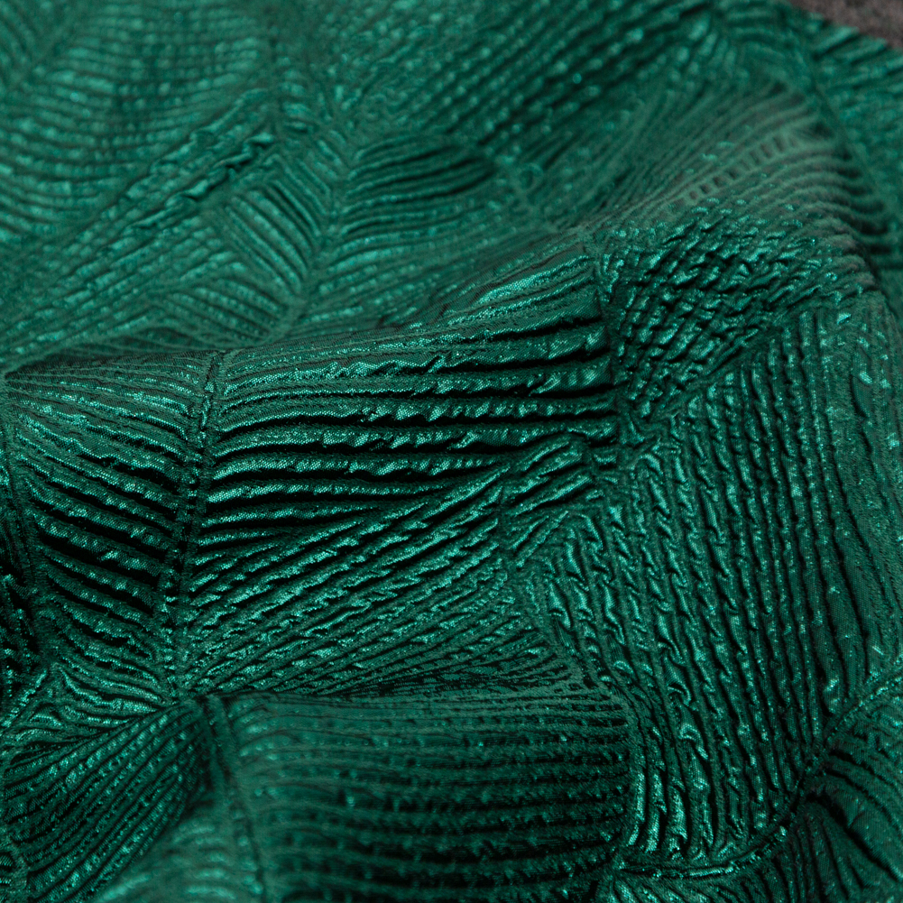 Elevate your next eveningwear with a show-stopping foliage design in a league of its own. Presenting our Luminous Green Double-Layer Organza Brocade. A brilliant green foliage design spans the entirety of this material in a monochromatic thicket of tropical leaves. A unique hand pairs with the firmly structured drape to create a material perfect for a myriad of couture pieces. Fabricate gowns, skirts, unique accent panels and more out of this fabric. We suggest using this material as the overlay of a gown paired with a satin lining and one of our many charming invisible zippers. Almost entirely transparent in construction, a lining is suggested if additional structure or modesty is desired.