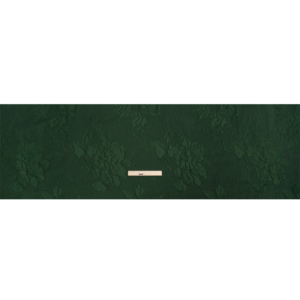 This Luminous Hunter Green Crinkled Luxury Brocade holds a forest of luxe possibilities! Achieved by additional weft threads in the weave, stiff wrinkles form abstract flowers on the lustrous green face, creating a three-dimensional surface teeming with texture. The hand is grainy and tactile; the drape is semi-structured and voluminous. This opulent fabric encourages special occasion gowns, structured jackets, corsets, and more. As it is translucent, a silk habotai lining will increase comfort, opacity, and luxury.