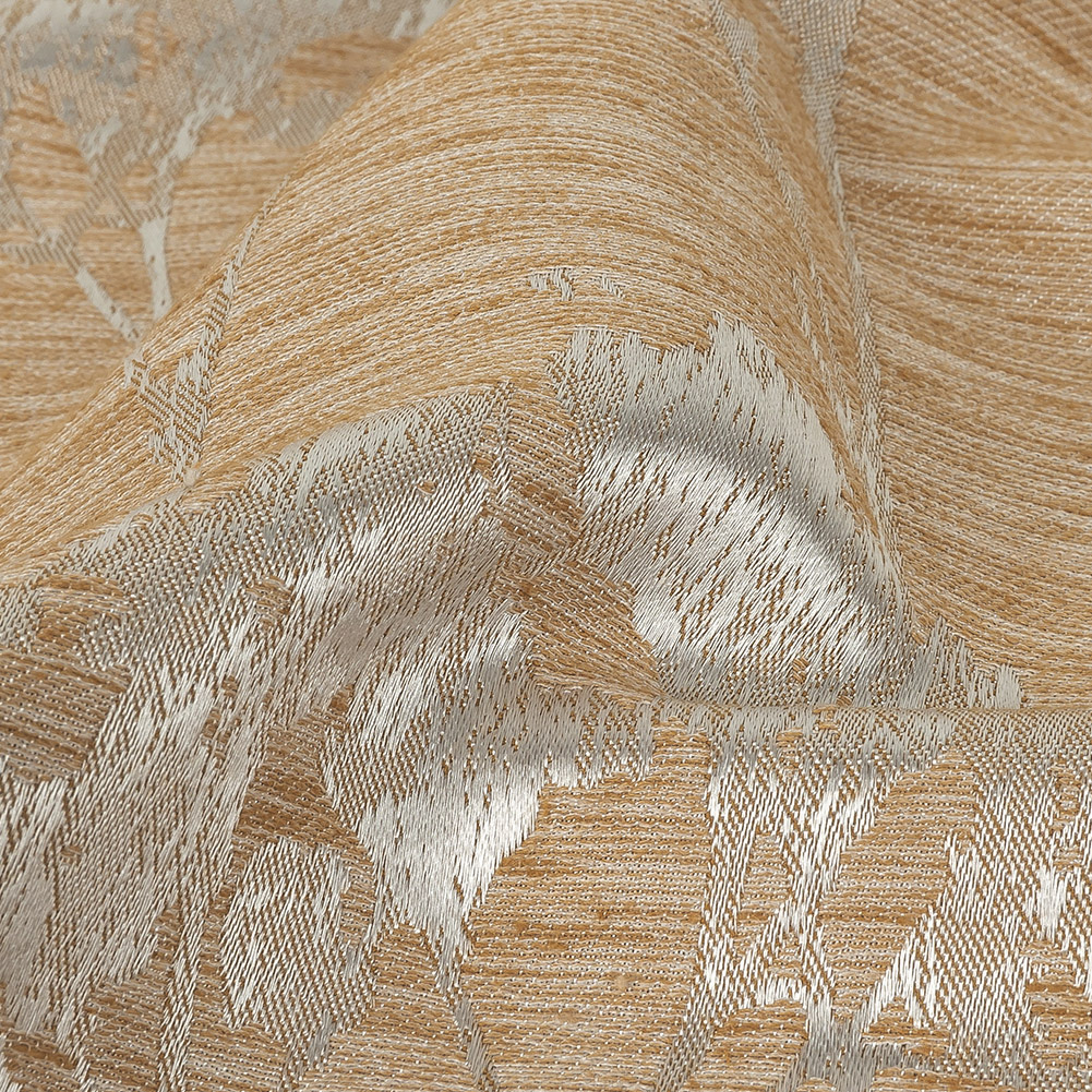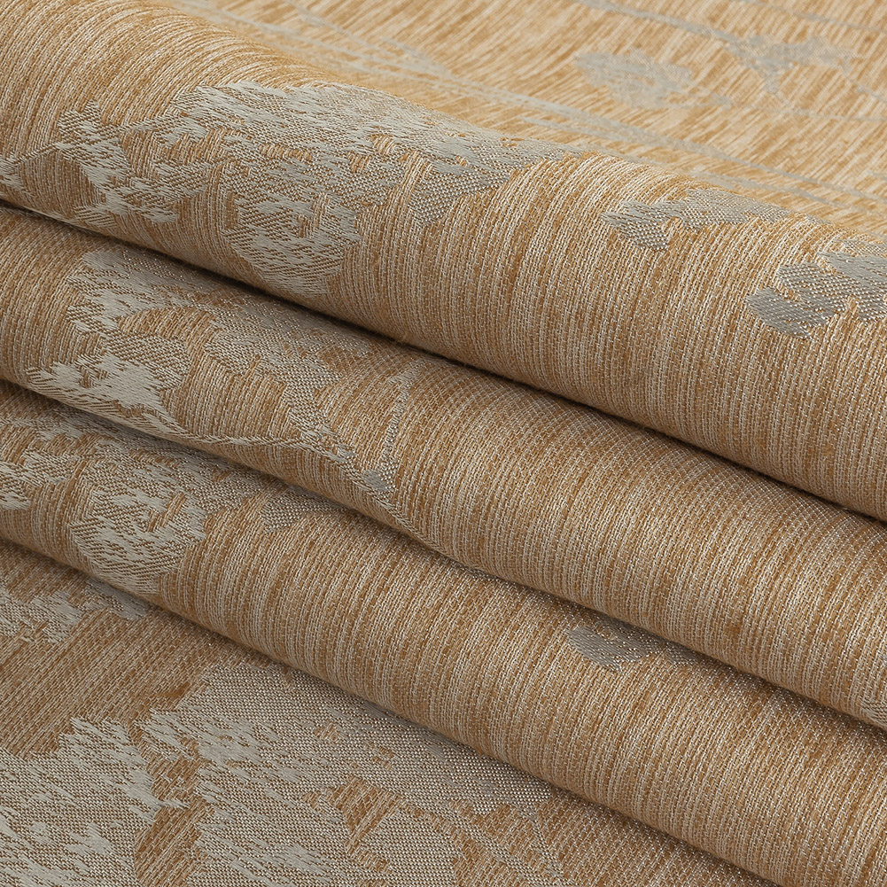 You'll attract only good things with this sticky-sweet British Imported Luminous Caramel Woodlands Jacquard! Spindly silver trees catch the light in such a way that they almost seem to glow as they stretch across the striated gray and amber ground, with a slight yet lightly textured hand. With a flexible drape, this Jacquard is ideal for a wide range of home decor projects, including upholstered accent chairs and ottomans, curtains that add a splash of color to living or bedrooms, and accessories like pillows and lampshades. Generally opaque, a lining is recommended for full blackout effect where desired, as well as to protect against sun fading in high-sun areas.Note: This fabric, in particular, can be machine washed up to temperatures of 40 degrees Celsius and can be ironed on a medium heat setting. Do not bleach or tumble dry this material. This fabric can be dry cleaned with any solvent except tetrachlorethylene.
