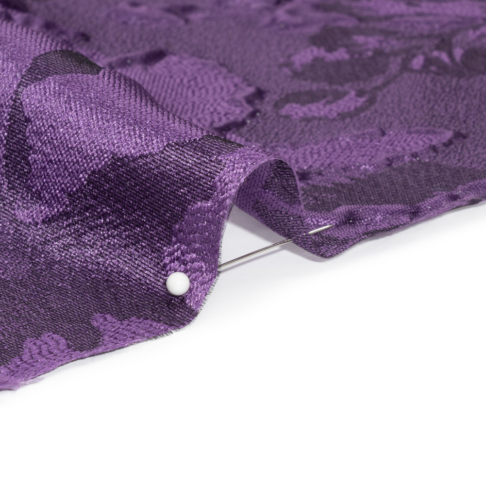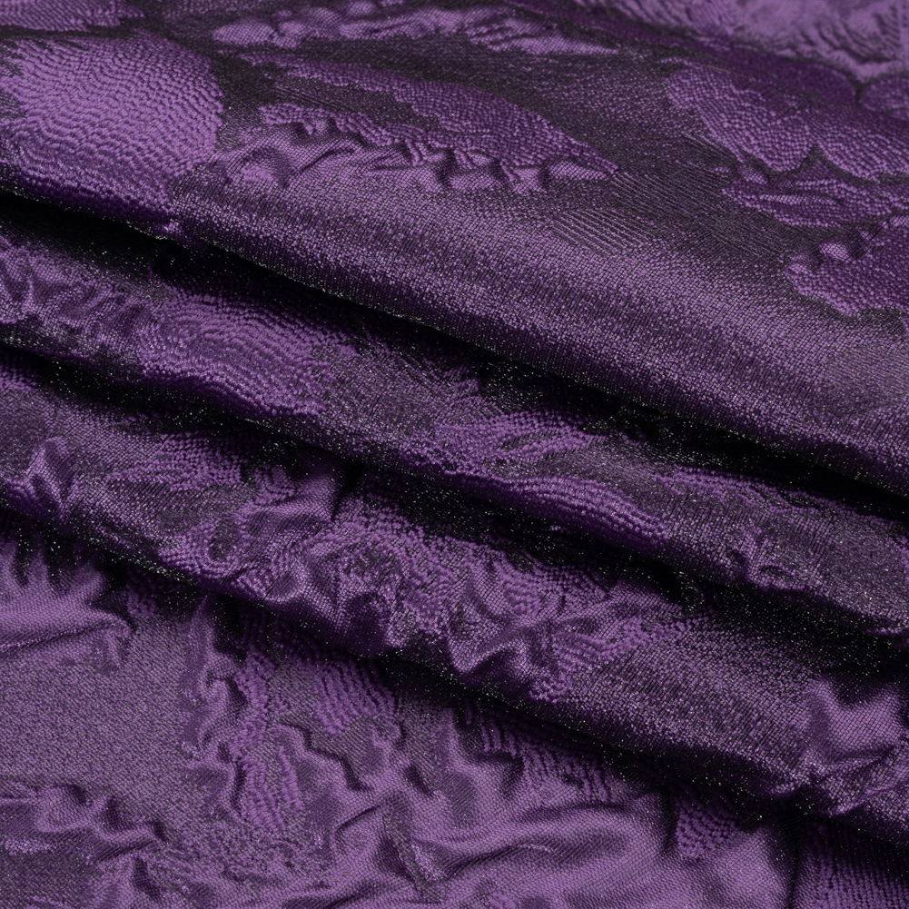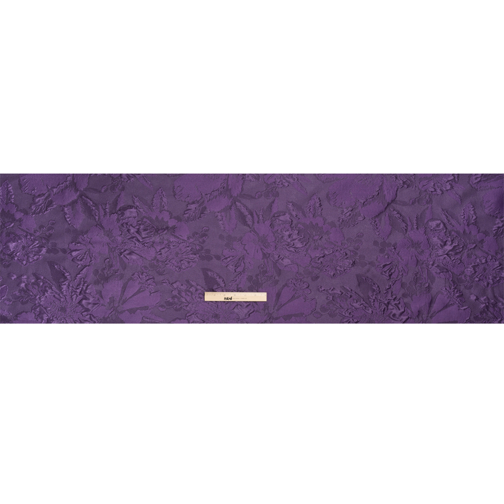 This majestic Luminous Purple Floral Lightweight Luxury Brocade is fit for kings and queens. The complex weave of this brocade gives the purple flowers an embroidered-like look as well as raises petals from the surface. To deepen the dimension of the face, darker purple hides in the corners of the blossoms. The hand switches from sleek to grainy, and the drape is voluminous, inspiring luxurious formal garments of all styles and silhouettes. Invite this lustrous fabric to special occasions as a long gown, circle skirt, structured jacket, exciting corset, and more! As this fabric is highly transparent, a silk habotai lining is recommended to increase opacity and luxury!