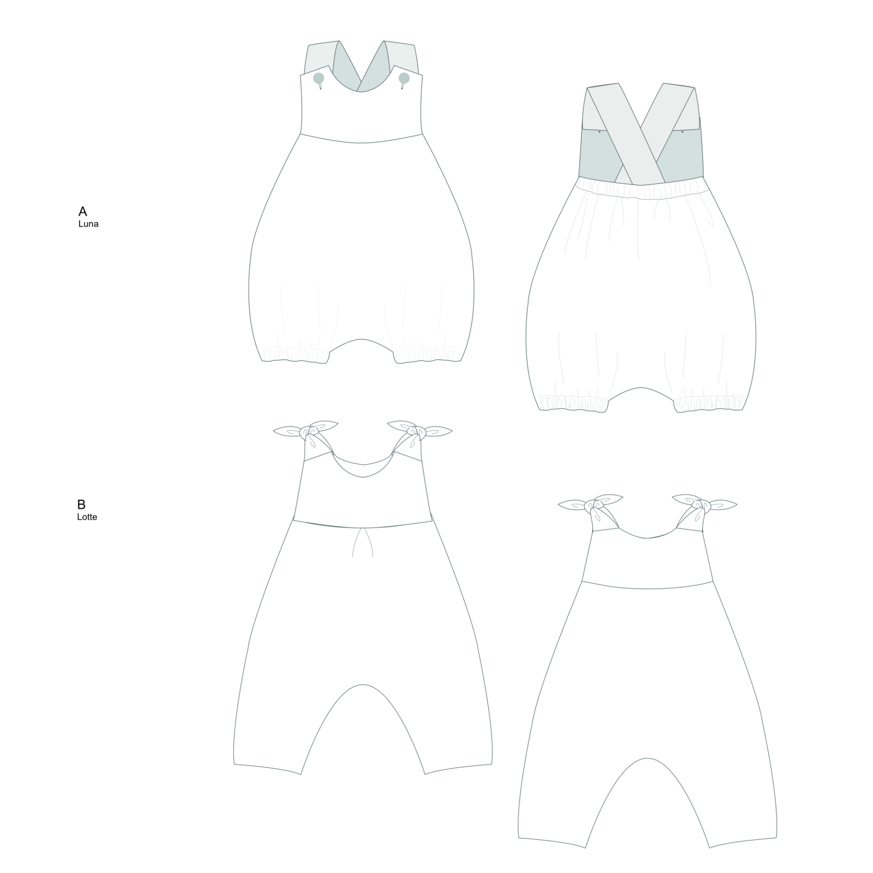 LUNA Baby Romper Sewing Pattern – Pinafore with Straps and Button Closure – Overall Design – Baby Clothes & Outfit PDF