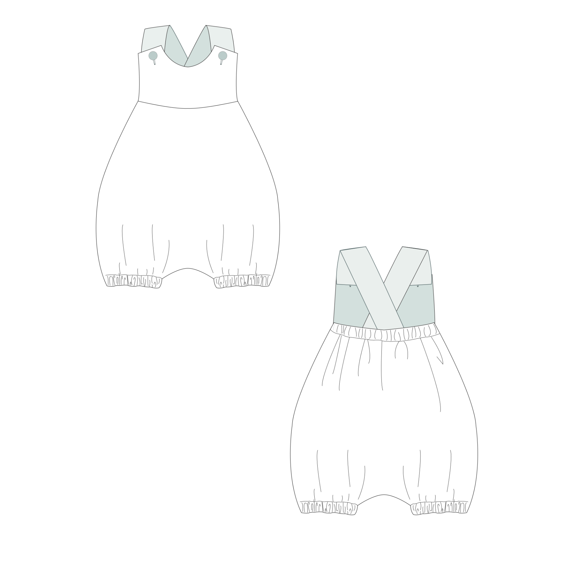 ✔ Model A Luna– The summer romper without a center seam features button-fastening straps and an elasticated back. Perfect for warm days and can be worn with or without a bodysuit.