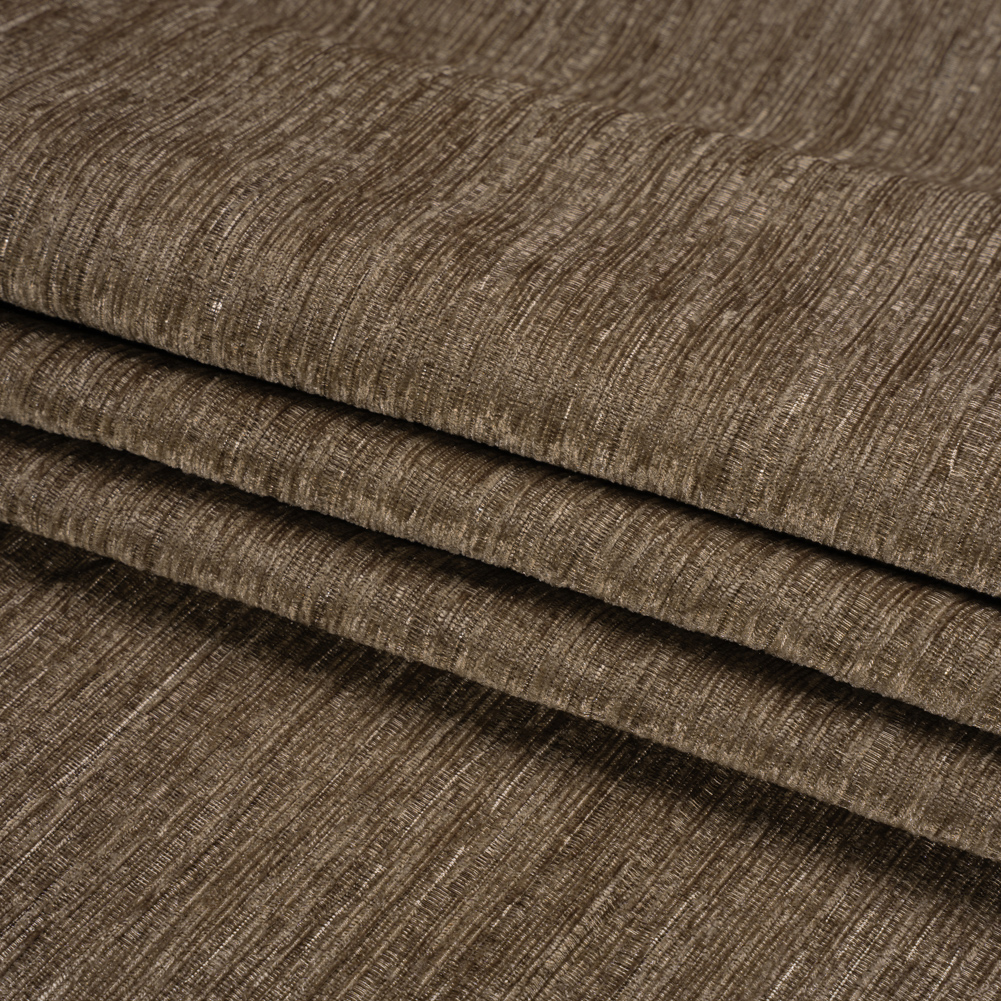 Creators of comfort rejoice over this Mayberry Bark Striated Luxe Double Wide Chenille. The brownish-gray face is striated, slubbed, and dimensional, tying comfort to luxury with its blend of a plush hand and beautiful luster. Synonymous with cozy gatherings and luxe designs, chenille orchestrates a soft and warm home environment. With a 110” width and a lightweight, malleable drape, tackling major reupholstery projects like sectionals, oversized armchairs, and headboards becomes less daunting. Plus, paired with a lining for complete opacity, create pooling drapes, valances, and more!