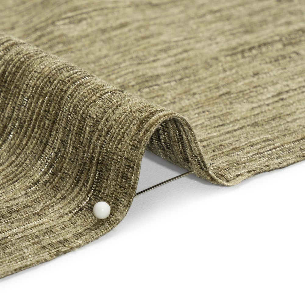 Moody yet neutral, this Mayberry Stormy Sea Striated Luxe Double Wide Chenille harbors the tumultuous tide into a place of relaxation. The greenish-brown face is striated, slubbed, and dimensional, tying comfort to luxury with its blend of a plush hand and beautiful luster. Synonymous with cozy gatherings and luxe designs, chenille orchestrates a soft and warm home environment. With a 110” width and a lightweight, malleable drape, tackling major reupholstery projects like sectionals, oversized armchairs, and headboards becomes less daunting. Plus, paired with a lining for complete opacity, create pooling drapes, valances, and more!