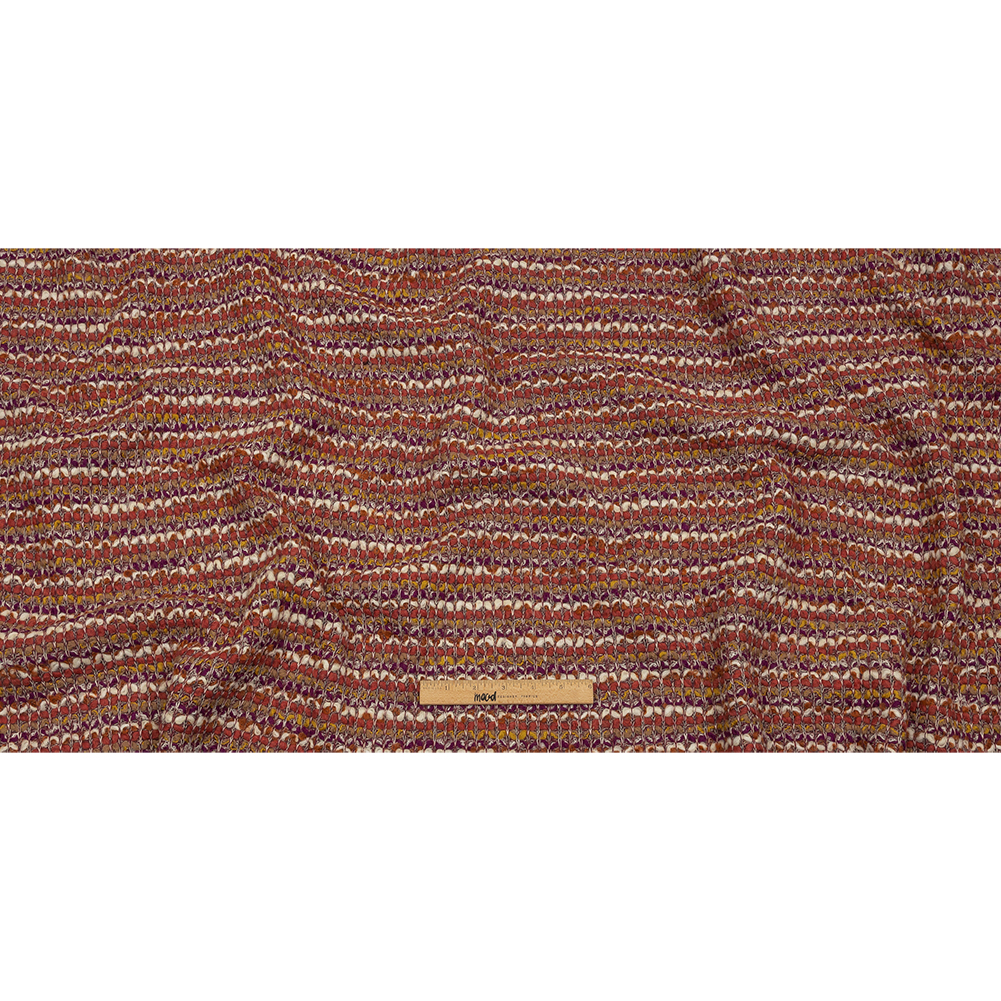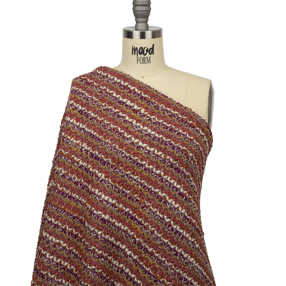 Warm colors, meet warm and cozy with this Magenta, Desert Rose, and White Boucle Stripes Chunky Wool Blend Sweater Knit .