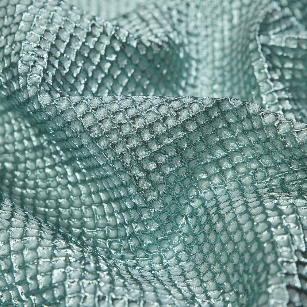 You’ll be looking minty fresh with this Metallic Mint Diamond Quilted Brocade! This contemporary brocade gives off a space-age aesthetic with its metallic tone and mini quilted texture.