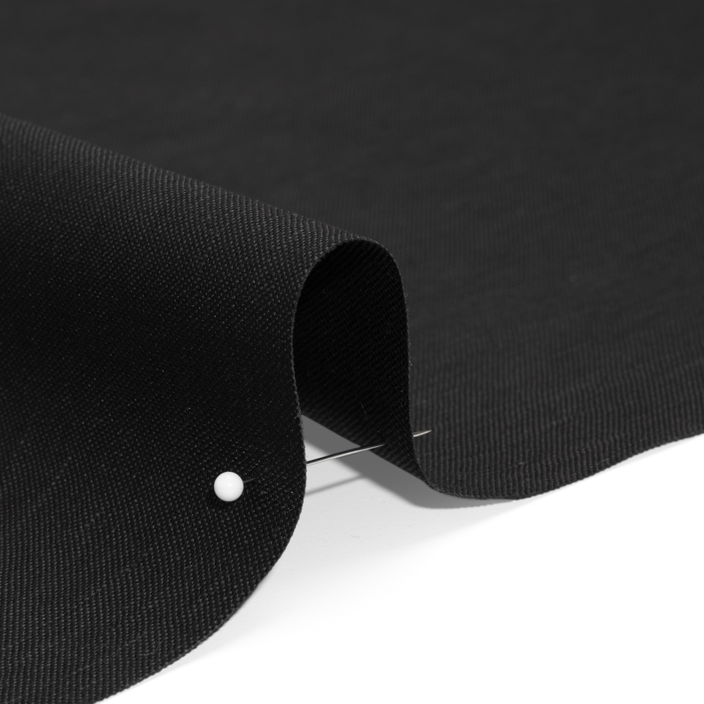 This Black Linen and Cotton Woven calls to mind the midnight sky. Medium in weight, it features a soft, cool face and a malleable drape.Suggested Projects: Pants, Dresses, Shirts, SkirtsContent: 60% Linen, 40% CottonStretch: NoneOpacity: Slightly TranslucentWith a medium weight and malleable drape, this black fabric displays a soft and cool face, adorned with a subtle luster. Its blend of linen and cotton proves to be a warm-weather staple; comfortable in the heat, airy on the breeze, and casual as your ideal summer day. Sit poolside in breathable wide-leg pants, sip spritzes in a relaxed shift dress, explore the surf shops in your overalls, and much more. Slightly translucent, a lining may be desired for added opacity and structure.