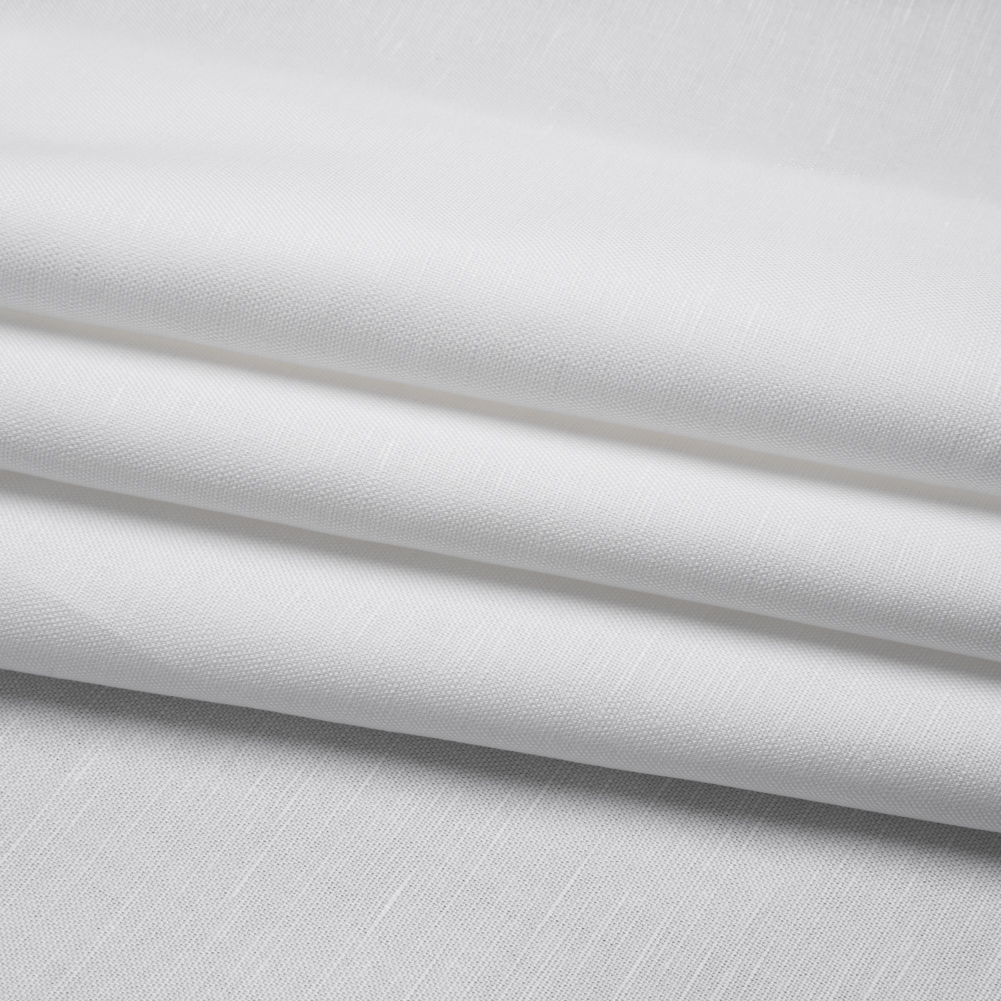 This White Linen and Cotton Woven shines like a star. Medium in weight, it features a soft, cool face and a malleable drape.Suggested Projects: Pants, Dresses, Shirts, SkirtsContent: 60% Linen, 40% CottonStretch: NoneOpacity: Slightly TranslucentWith a medium weight and malleable drape, this bright white fabric displays a soft and cool face, adorned with a subtle luster. Its blend of linen and cotton proves to be a warm-weather staple; comfortable in the heat, airy on the breeze, and casual as your ideal summer day. Sit poolside in breathable wide-leg pants, sip spritzes in a relaxed shift dress, explore the surf shops in your overalls, and much more. Slightly translucent, a lining may be desired for added opacity and structure.