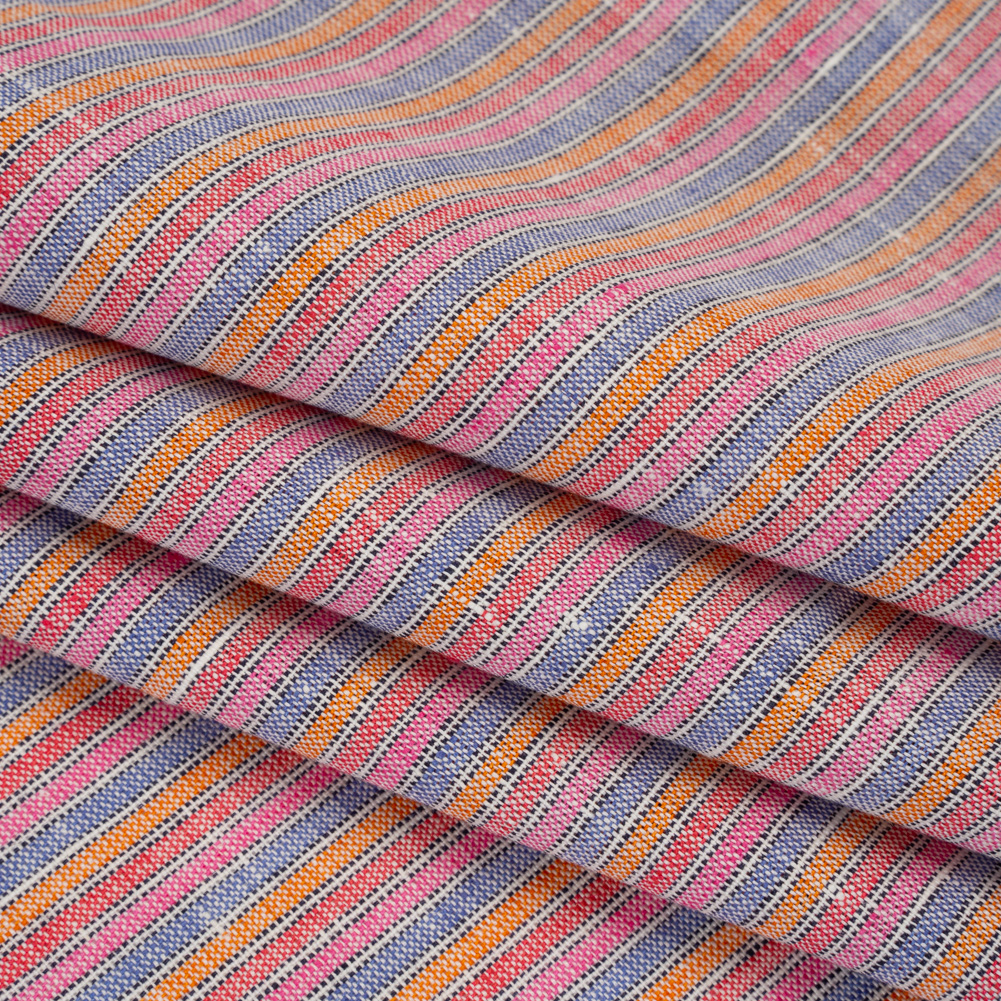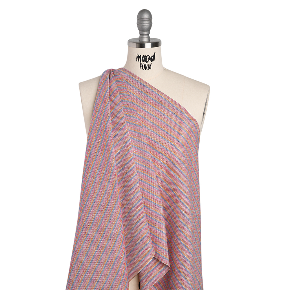 Hues of a summer sunset separate atop this Railroaded Striped Medium Weight Linen Woven—featuring a slightly slubbed hand and fluid drape.Suggested Projects: Shirts, Skirts, Pants, DressesContent: LinenStretch: NoneOpacity: TranslucentPeriwinkle, pink, and orange railroaded stripes race across this linen woven. A slightly slubbed hand and fluid drape enhance the laid-back charm of this linen—a breathable warm-weather favorite that effortlessly transitions from office wear to weekend staples. Naturally moisture-wicking and medium in weight, it’s the perfect companion for hot summer days. Craft breezy button-downs, pleated skirts, pinafores, wide-leg pants, and more! Translucent, a lining may be desired depending on the project.