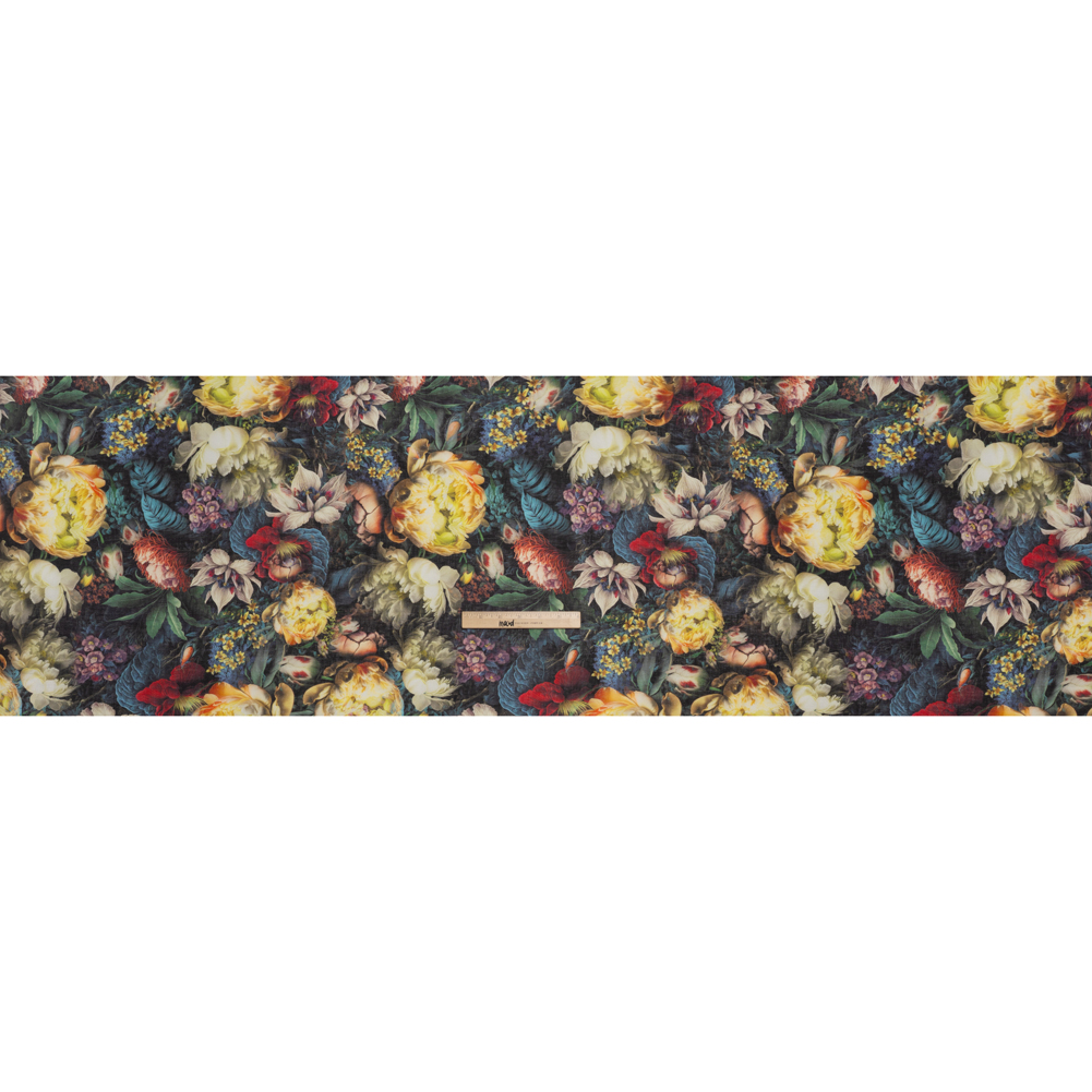 Let your wardrobe take root in wonder with this Yellow, Red, and Dark Green Mythical Garden Medium Weight Linen Woven Print—a storybook stunner blooming with fantastical flair.Suggested Projects: Shirts, Skirts, Pants, DressesContent: 100% LinenStretch: NoneOpacity: TranslucentFeaturing lush, leafy motifs and vibrant blossoms layered and blended across a black ground, this fabric feels pulled from a mythical meadow—bringing artistry and charm to warmer weather wardrobes. With its crisp hand, breathable feel, and moderate drape, it’s perfect for boxy shirts, paperbag shorts, midi dresses, or tiered skirts. Due to its translucent nature, consider adding a lightweight lining or layering to suit your project's needs.