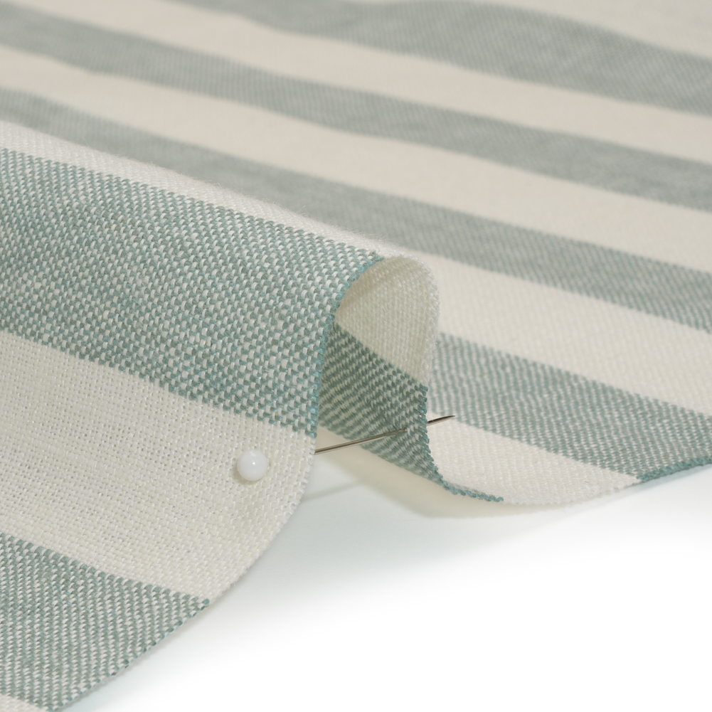 Relaxing escapades aren’t the same without this Sage Green and Cream Awning Stripes Medium-Weight Linen Woven, featuring a slightly slubbed hand and fluid drape.