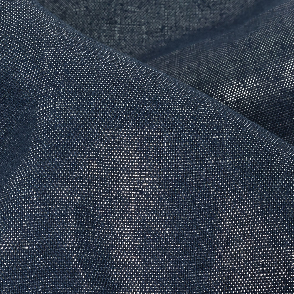 Medium Weight Linen Woven with Metallic Foiling - Galactica Blue and Silver - Bianca Collection