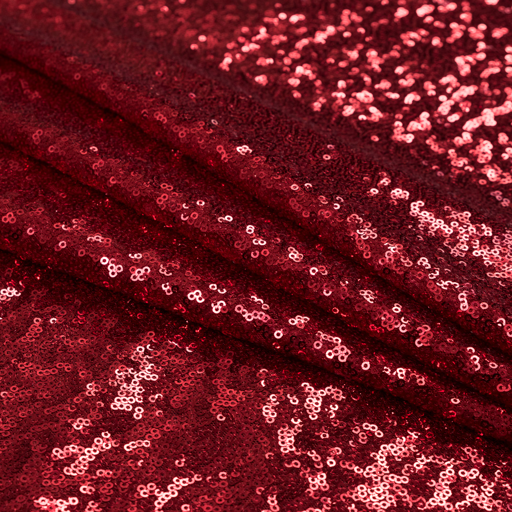 Nothing is a ravishing as a Red Baby Sequined Mesh. Covering the span of a solid mesh remains a condensed layout of circular baby sequins for all over coverage. Thin with a noticeable stretch through the weft, produce fitted garments such as bodycon dresses or tailored jackets for those looking to highlight their curves. The material also provides a fluid drape for those looking for a bit of fluidity and movement in their going out apparel. Translucent, a lining is recommended for both opacity and comfortability purposes. Do note that the sequins start 3" from either selvage edge.