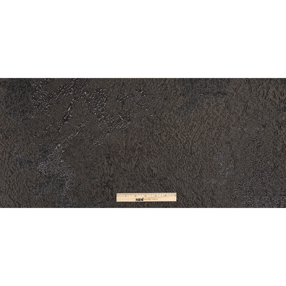 Starlight shimmers while a new moon casts the surface of this Metallic Black Abstract Luxury Brocade into deepest night. Lakes of glittering black pool on the dark, textured surface of this material, shining in bubbling ripples. With a full, flexible drape that will fall away from the body in soft folds, create swishy skirts and voluminous evening gowns. Loose-fitting coats, jackets, and vests will shine, and a fairly soft hand means they'll easily become fashionable favorites as well. Consider adding a lining for additional comfort and structure in more tailored garments, or to add opacity, as this fabric does let some light through.