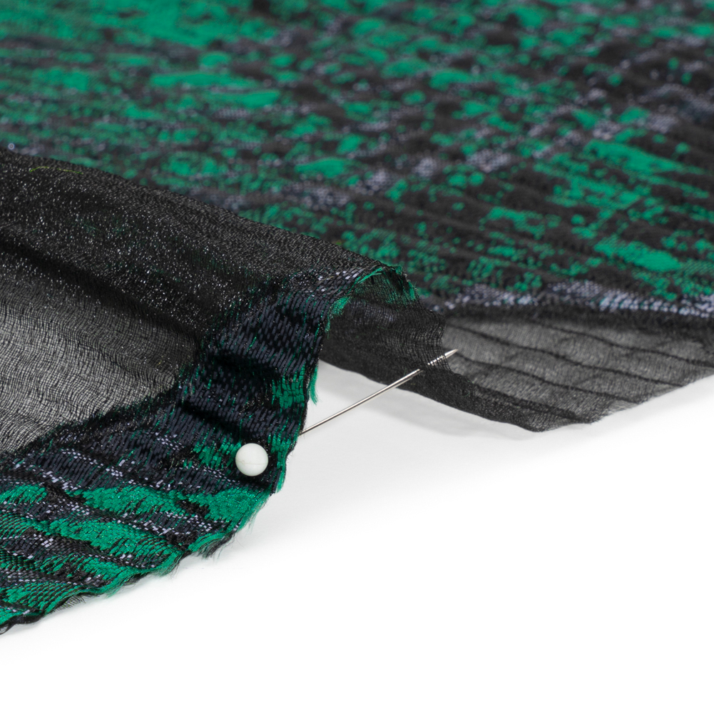 Metallic Black and Green Abstract Formations Ribbed Burnout Luxury Brocade