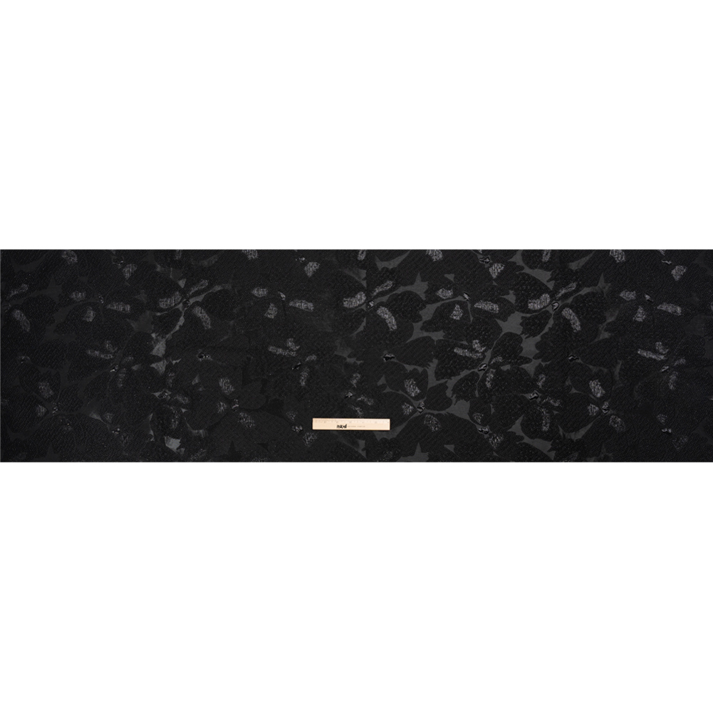 Moonlight reflects off the dew drops in the garden of this Metallic Black Floating Blossoms Luxury Brocade.