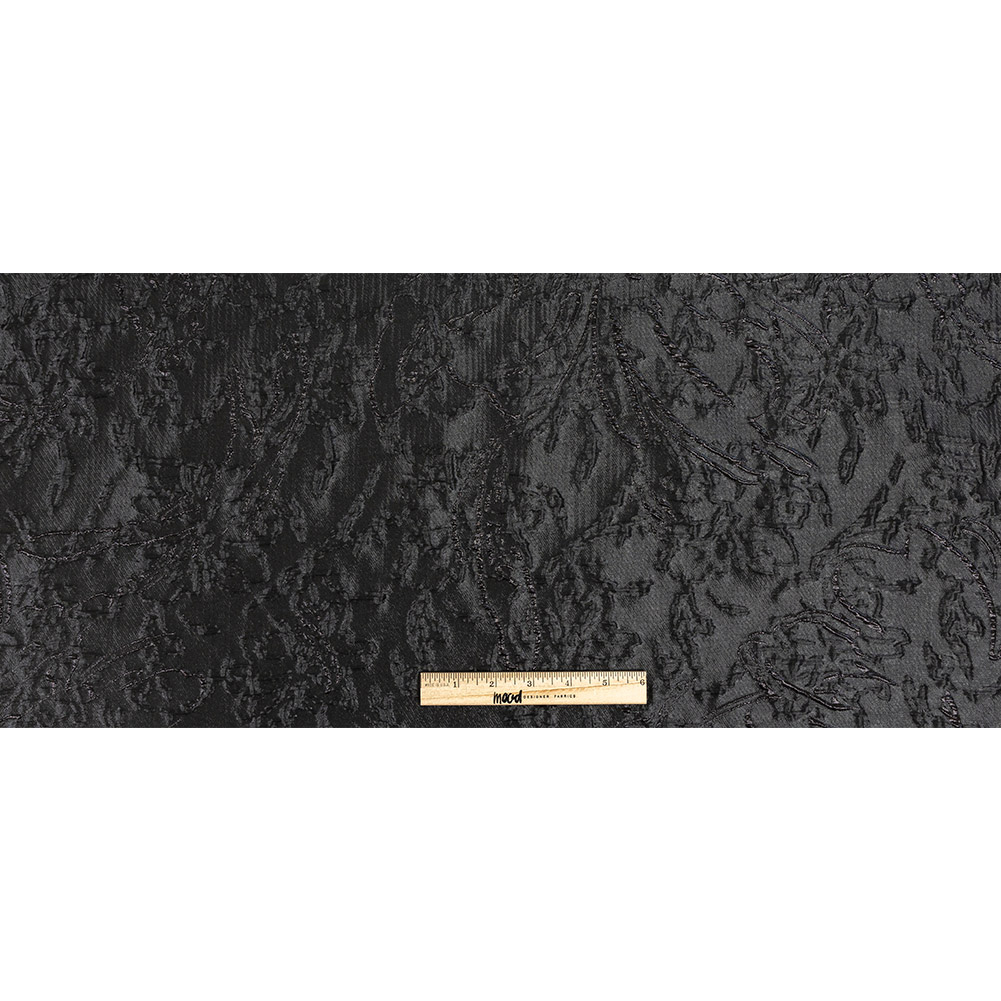 This subtle Metallic Black Floral Silhouettes Luxury Brocade encourages you to embrace your dark side. Shimmering metallic black traces the edges of delicate petals, marking the only indications of their presence over a softer black base. With a crisp hand and voluminous drape, make a statement in full ballgowns, billowing circle skirts, and loose, boxy jackets. A lining may be added for comfort and opacity, but this translucent fabric would shine without, as a semi-sheer overdress or cape.