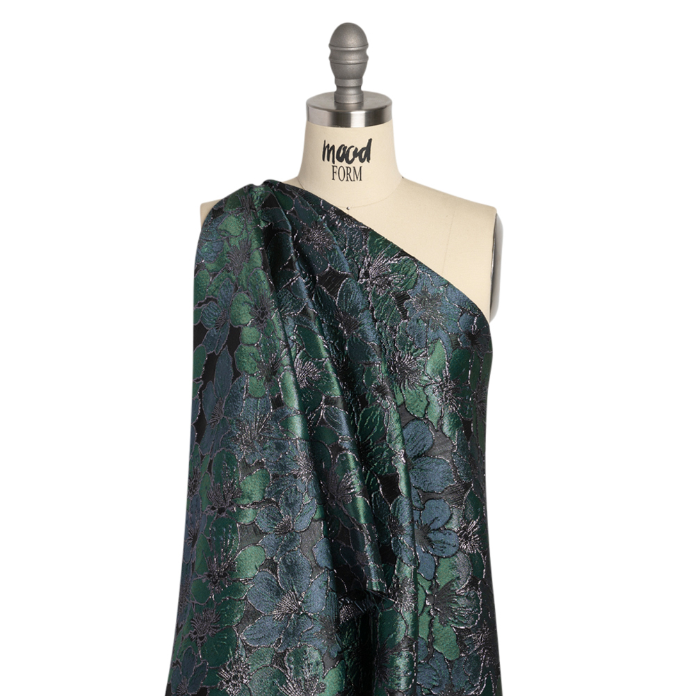 Metallic Black, Navy and Deep Green Floral Frolic Luxury Brocade