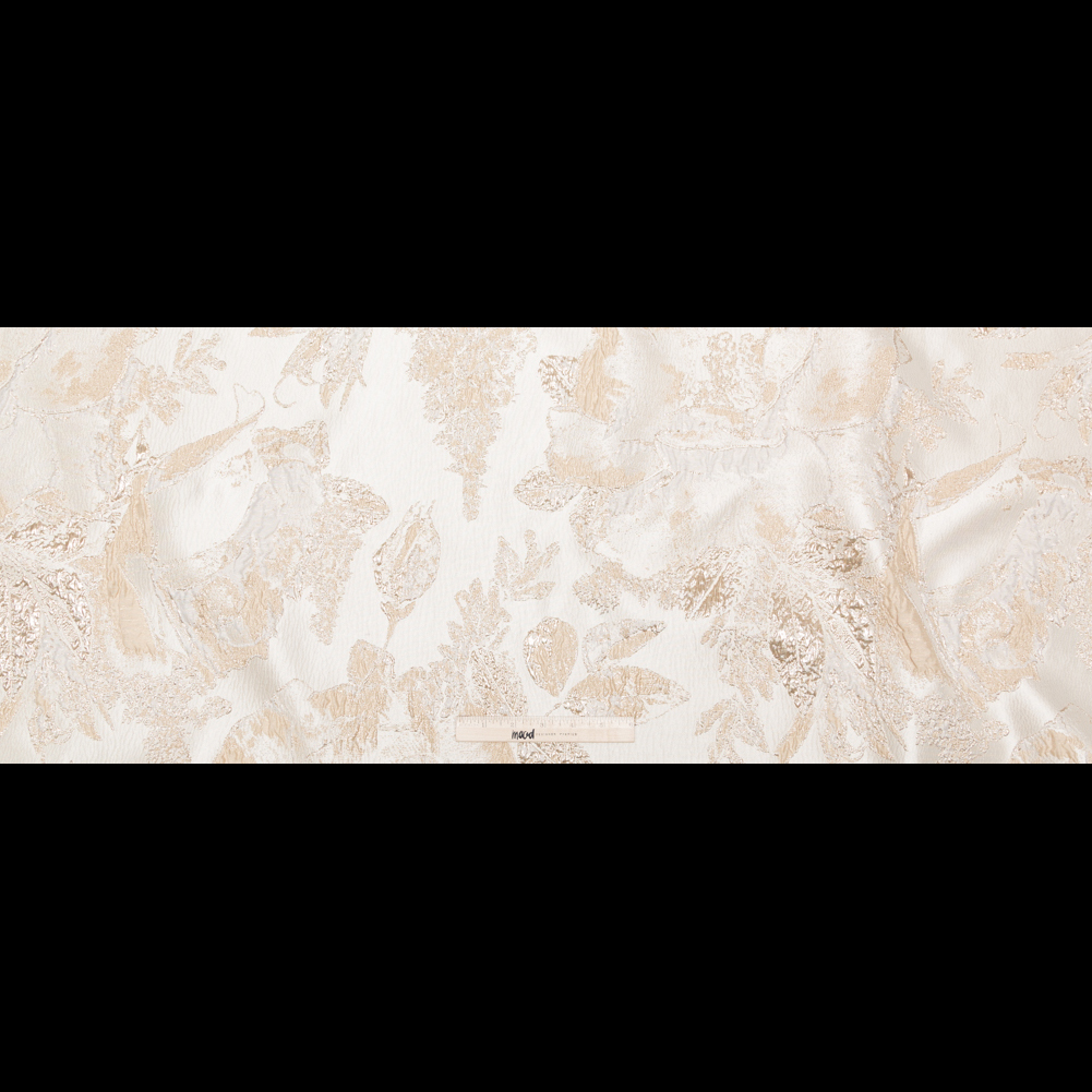 Floral fireworks burst apart and spread their diamond dust along the face of Mood’s Metallic Bright Gold, Oyster Gray and Odyssey Gray Floral Luxury Brocade.