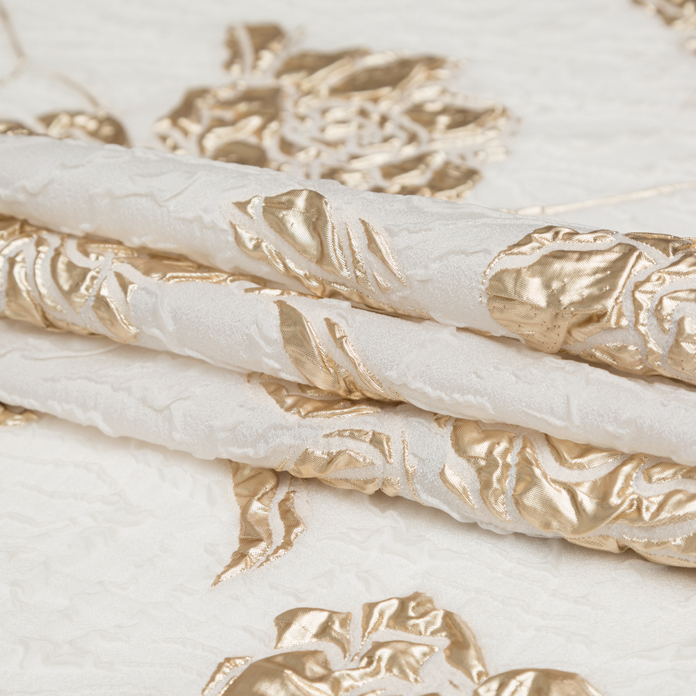 Metallic Bright Gold and Snow White Rosy Luxury Brocade