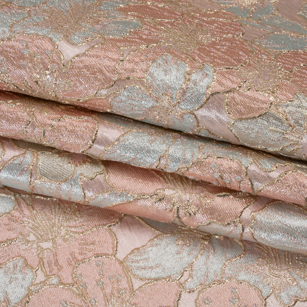 Metallic Brocade - Baby Pink, Pale Aqua and Gold Floating Blossoms