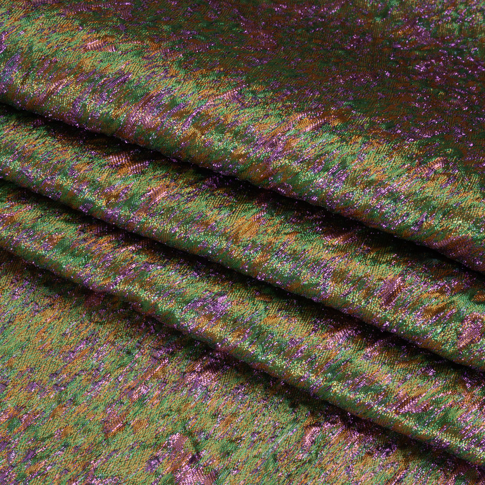Drape yourself in beads and party all night on Mardi Gras in this Mustard Yellow, Green and Purple Mottled Abstract Metallic Brocade. With a tactile hand and semi-structured drape, the spotlight awaits you in this fabric.Suggested Projects: Gowns, Skirts, JacketsContent: 100% PolyesterStretch: NoneOpacity: SheerThis metallic brocade glistens with eveningwear possibilities. Mustard yellow, green, and purple threads weave a mottled abstract design atop this elegant fabric. With a tactile hand and semi-structured drape, this brocade will make every night out a magical one. We envision shimmering, flowing gowns, billowing hoop skirts, or even suit jackets—each piece ready to make the best-dressed list. As this fabric is sheer, we recommend use with a lining for increased opacity and structure.
