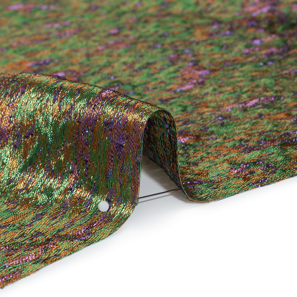 Drape yourself in beads and party all night on Mardi Gras in this Mustard Yellow, Green and Purple Mottled Abstract Metallic Brocade.
