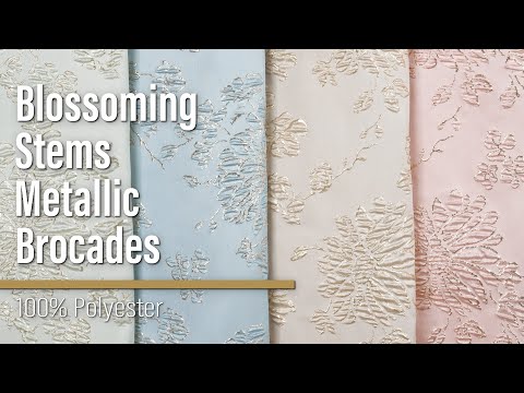 The outfits you craft with this Pale Mint and Gold Blossoming Stems Metallic Brocade will always be in mint condition. Bring some whimsy and magic back into your wardrobe with its tactile hand and semi-structured drape.Suggested Projects: Gowns, Skirts, Jackets, ShawlsContent: 100% PolyesterStretch: NoneOpacity: TranslucentBlossoming stems and flowers bloom up from this pale mint brocade, their raised texture accentuated in metallic gold threads—creating a three-dimensional, tactile hand and falling in a semi-structured drape. Use this glimmering fabric to sew evening gowns, skirts, chic shawls, and even tailored jackets. As this fabric is translucent, we recommend using a lining for increased opacity and structure.