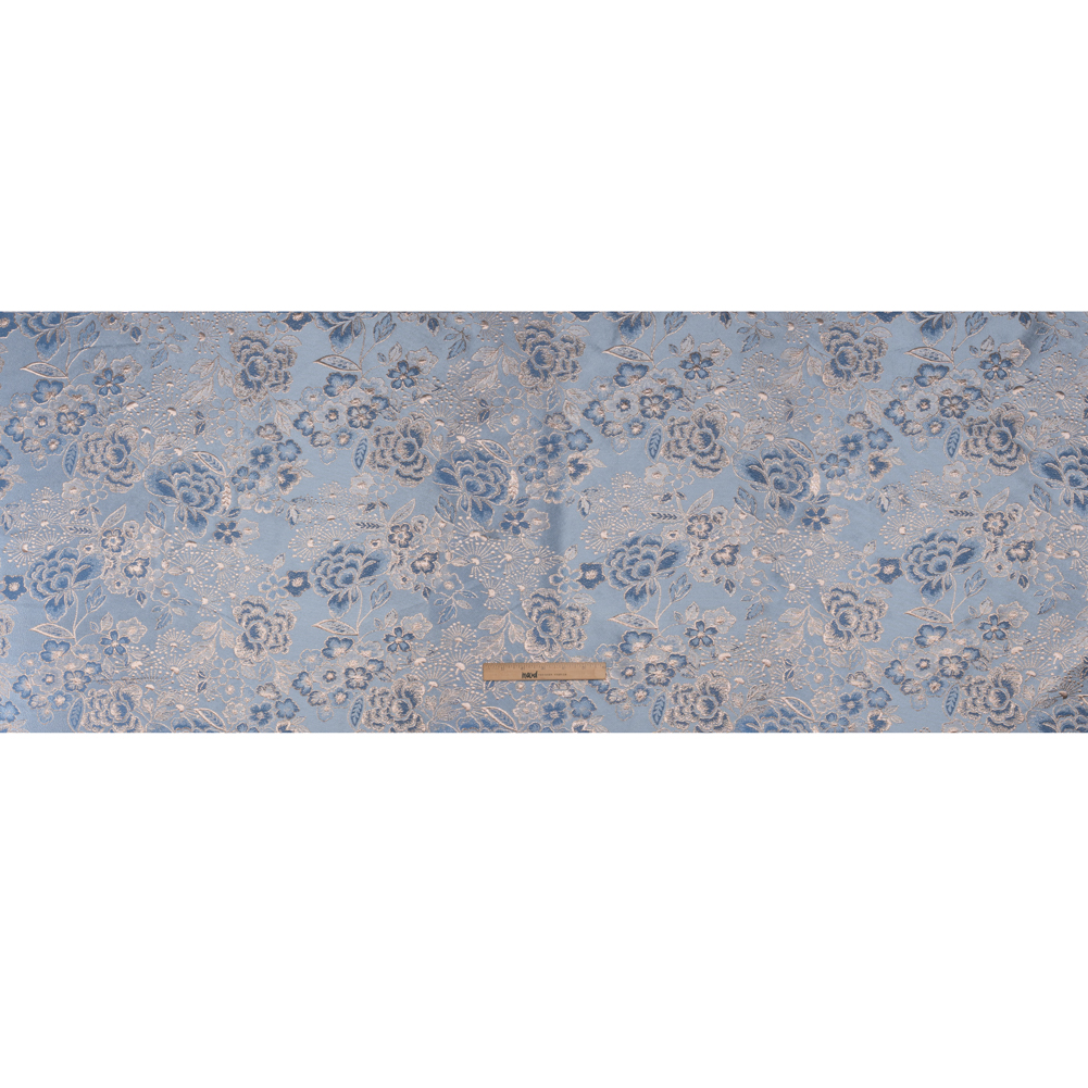 Metallic Brocade - Pastel Blue, Country Blue and Silver Flower Garden