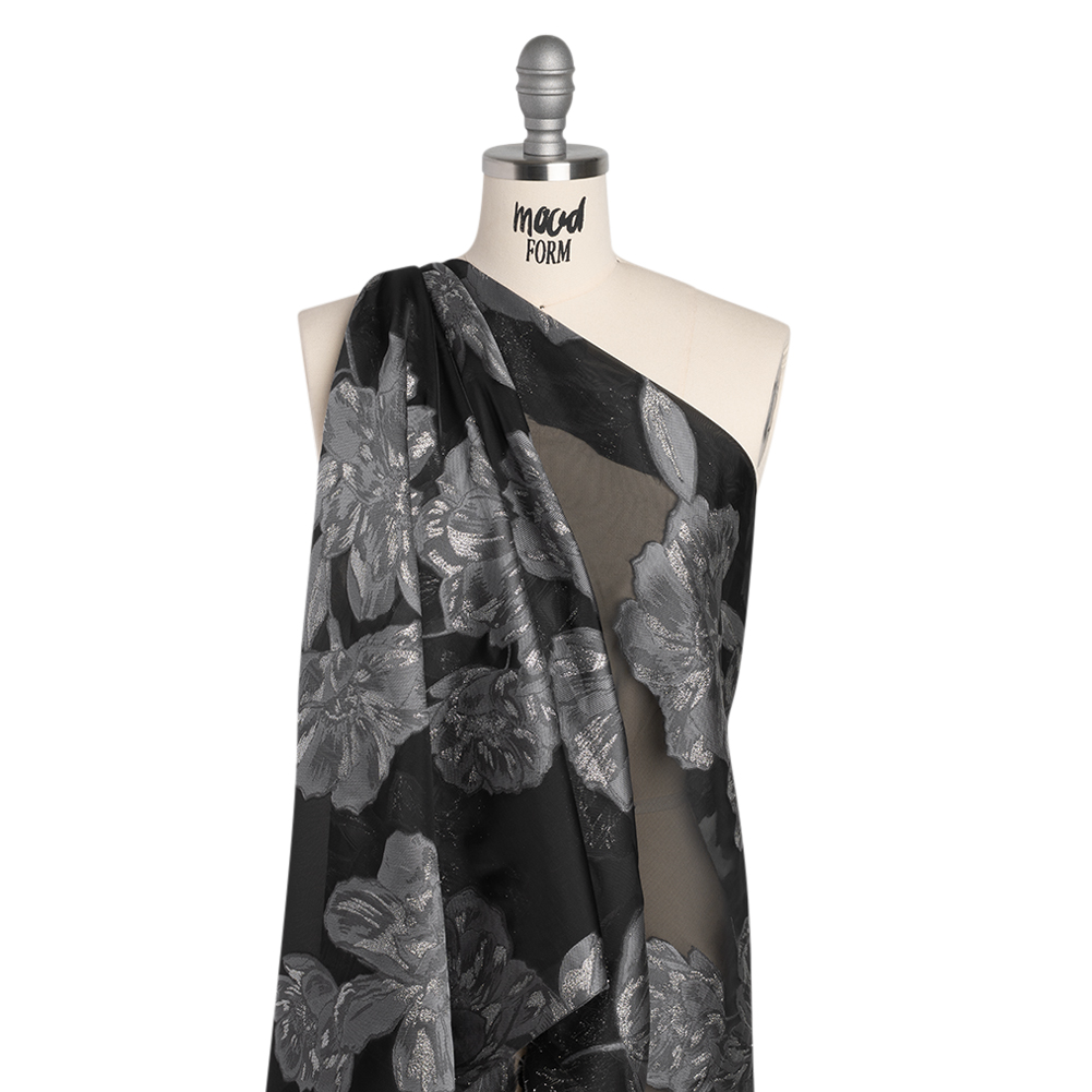 Monochrome magnificence unfurls from this Floral Metallic Burnout Brocade—featuring a smooth, lightly tactile hand and airy drape.