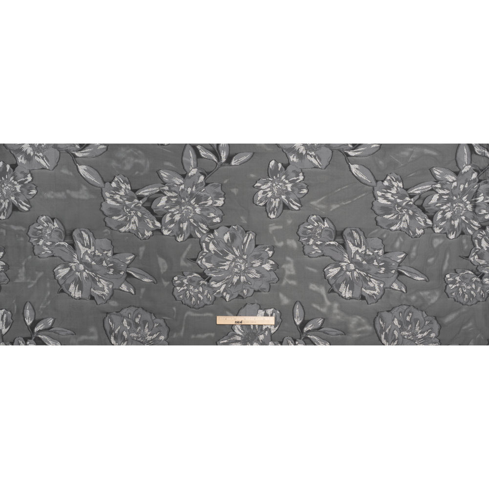 Metallic Burnout Brocade - Black, Gray and Silver Floral - Designer Deadstock