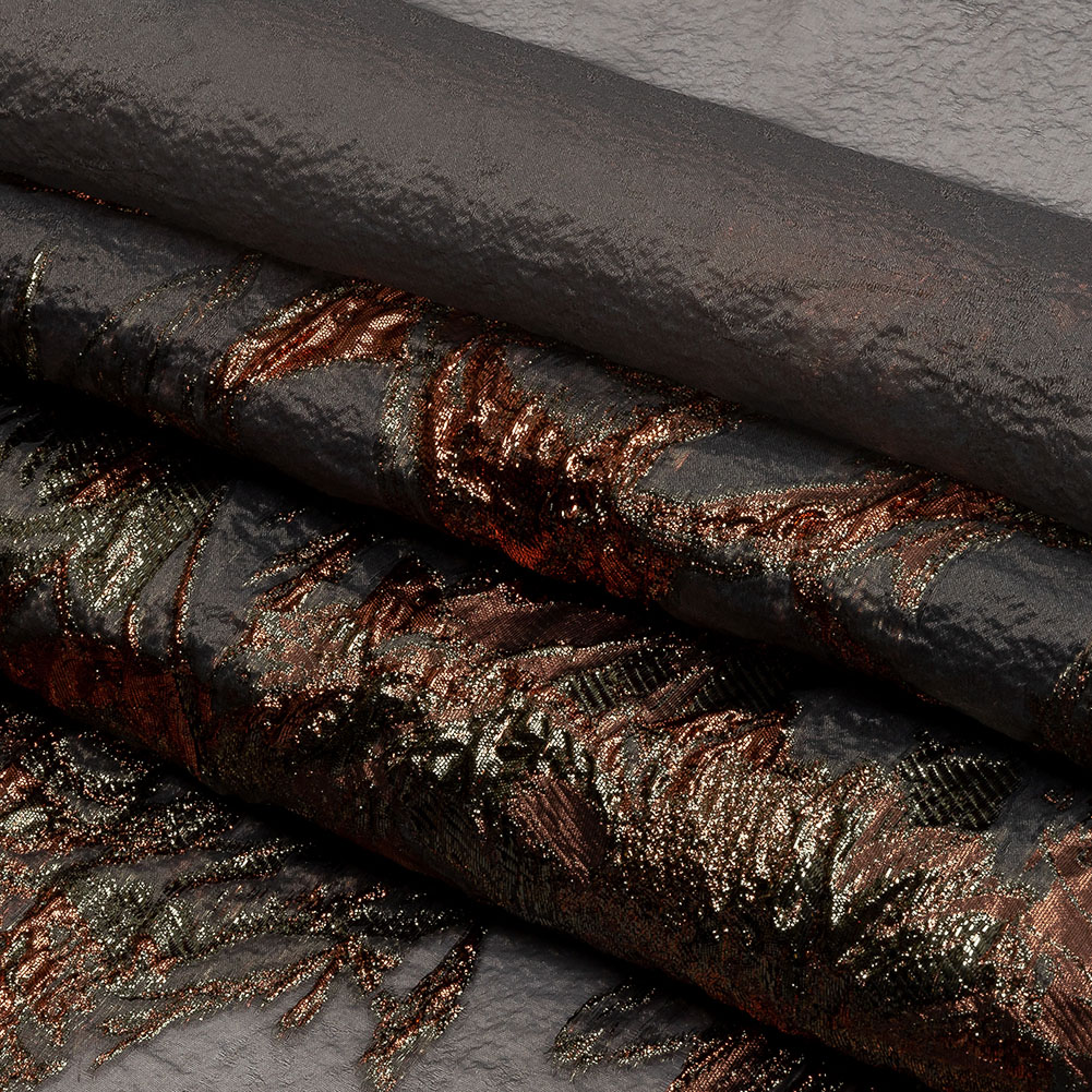 Travel to Mars and keep sun flares in your wardrobe with this Metallic Coral, Gold and Gray Flashy Flowers Luxury Burnout Brocade.