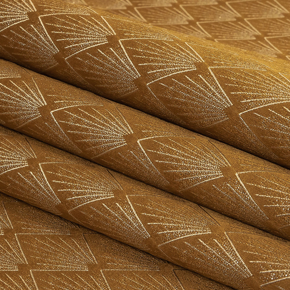 Make home furnishings that outshine the rest with our British Imported Metallic Bronze Radiant Diamonds Drapery Jacquard! Neat rows of diamonds feature radiating lines of beige and sparkling silver, all over a bronze orange ground.