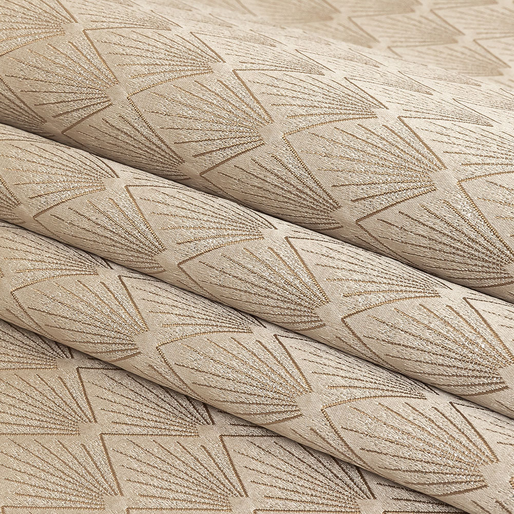 Luxury and elegance are evident in our British Imported Metallic Nougat Radiant Diamonds Drapery Jacquard! Neat rows of diamonds feature radiating lines of light tan and sparkling silver, all over a pale gold ground.
