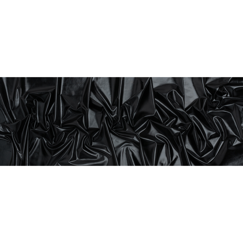 Add some alluring shine to your staple pieces with this Black Metallic Foiled Polyester Jersey Knit. With a sleek hand, flexible drape, and slight stretch, it’s the perfect day—and night—companion.Suggested Projects: Dresses, Pants, Skirts, TopsContent: 100% PolyesterStretch: 25% Weftwise, 15% WarpwiseOpacity: OpaqueThe metallic black foil glitters across the solid black backdrop of this polyester jersey knit, catching the light with every move for a dazzling, high-shine effect. With its sleek hand, flexible drape, and 25% stretch through the weft (plus a touch in the warp), this fabric is designed to make a statement. Ideal for standout creations, it transforms effortlessly into bodycon dresses, matching mini skirts and crop tops, or flared pants paired with a sleek athletic jacket for bold, all-day—and night—style. Fully opaque, it requires no lining—keeping your projects lightweight and ready to move.