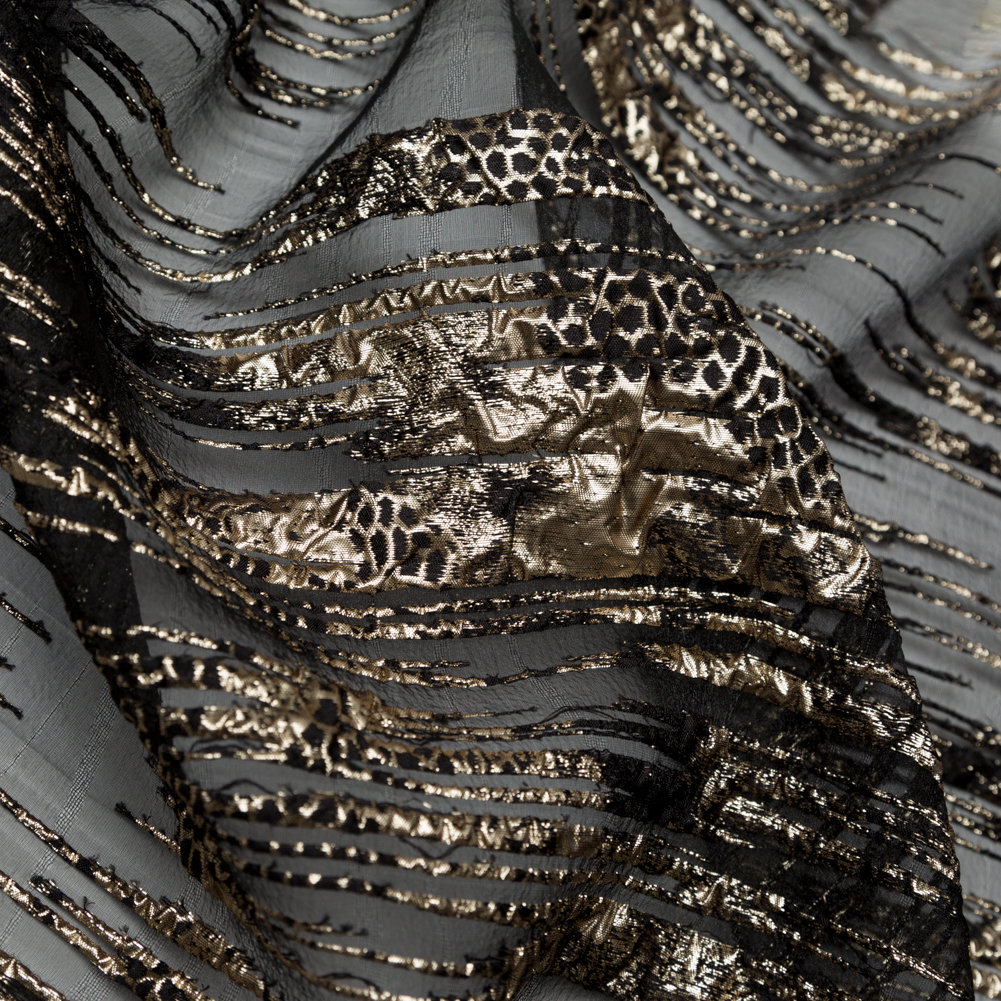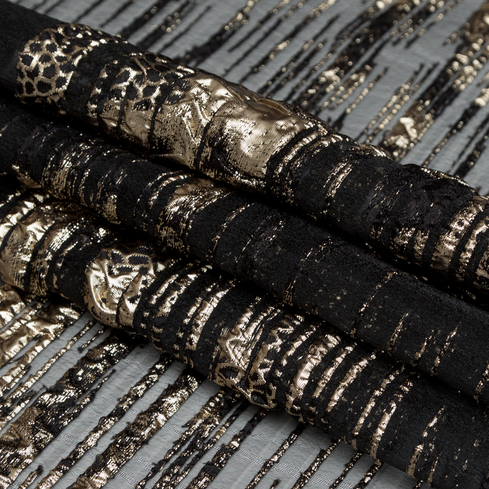 Metallic Gold and Black Luxury Striated Burnout Brocade
