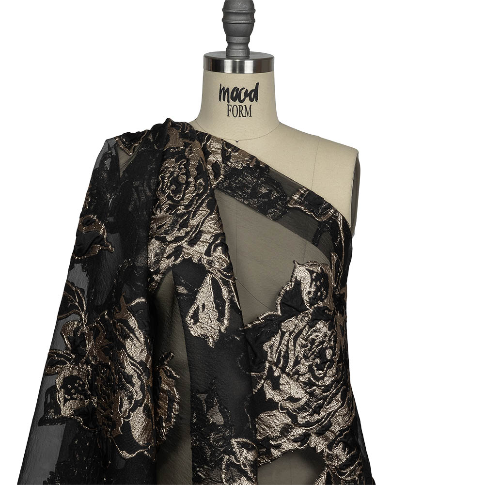 As if dripping with gold, it’s hard to imagine a fabric more opulent than Mood’s Metallic Gold and Black Roses Luxury Organza Burnout Brocade.