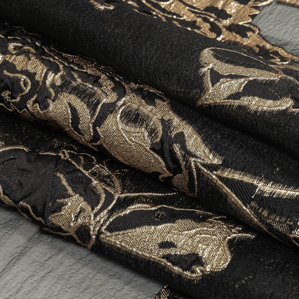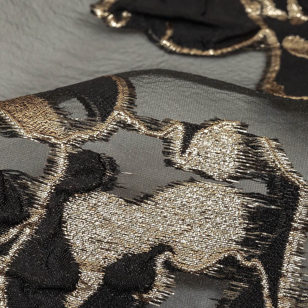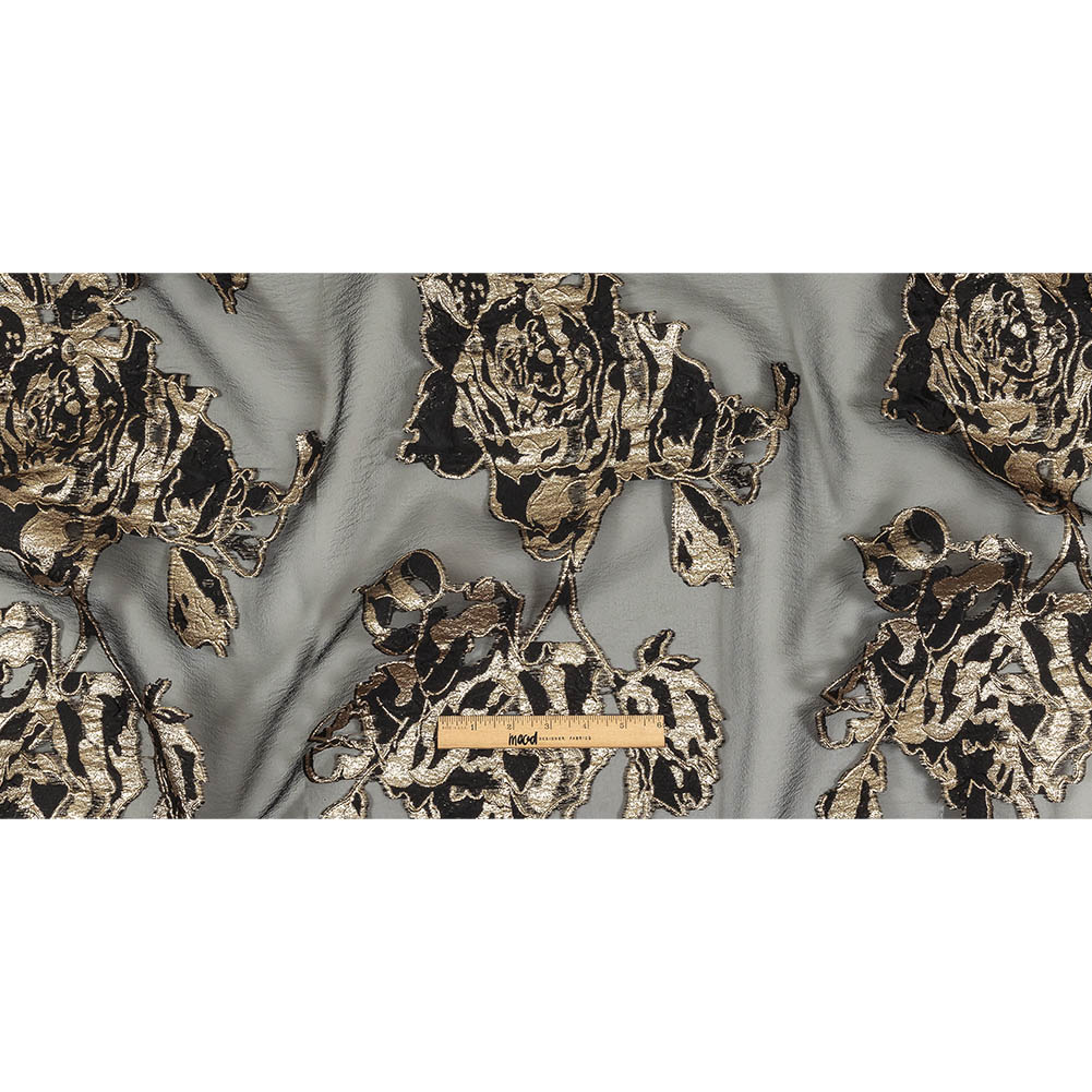 Metallic Gold and Black Roses Luxury Organza Burnout Brocade