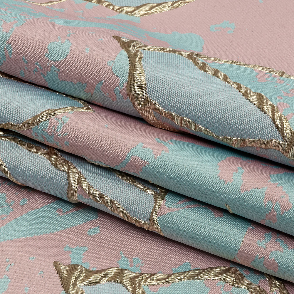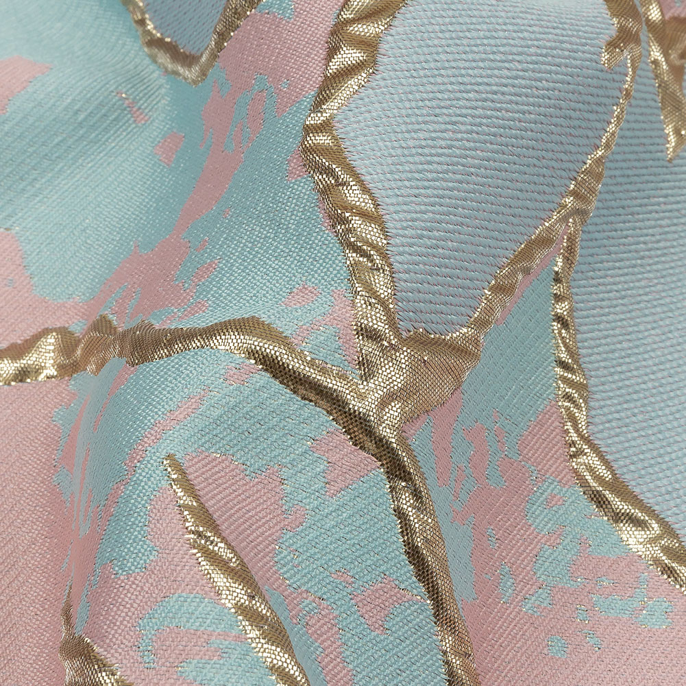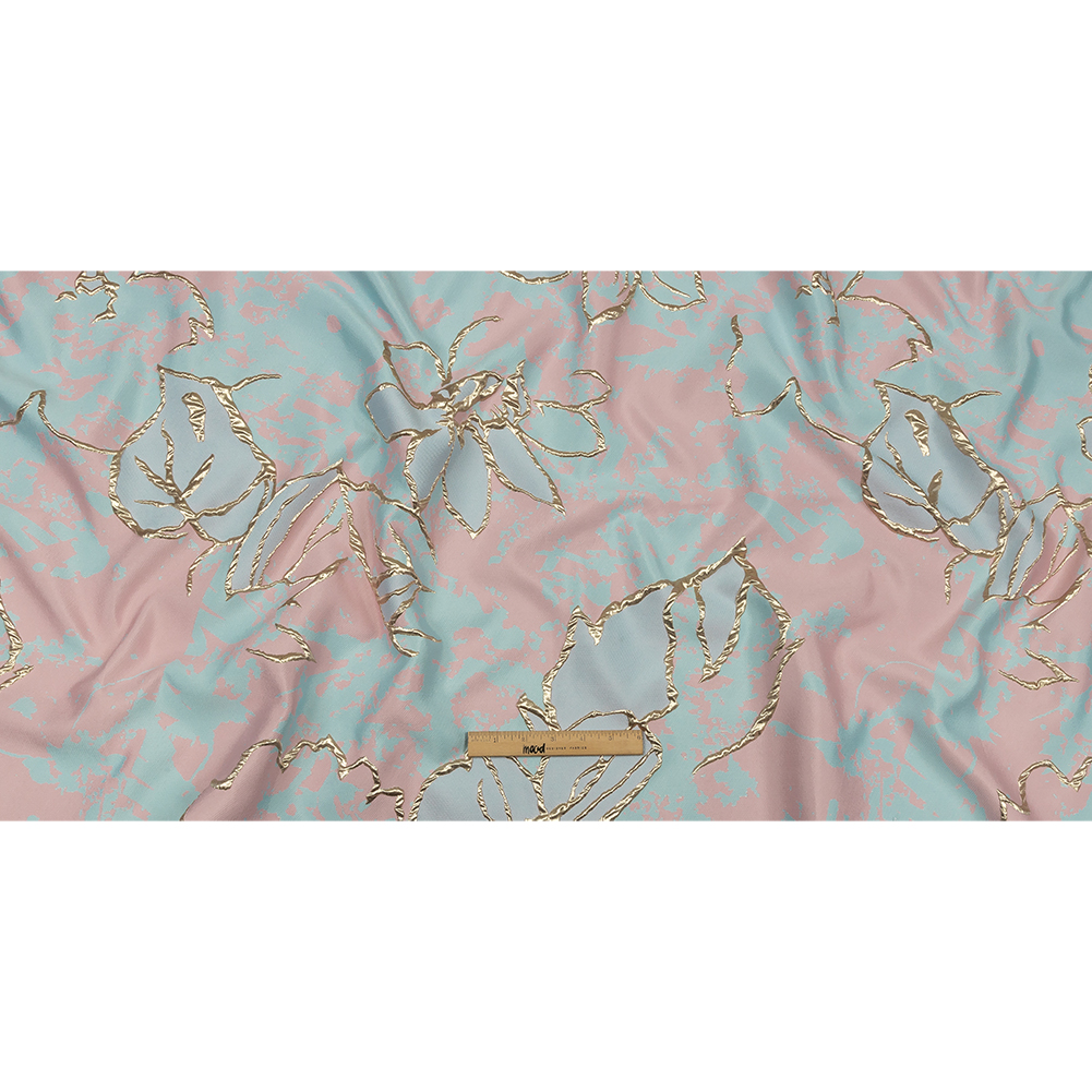 Metallic Gold, Pink and Sky Blue Mottled Floral Outlines Luxury Brocade