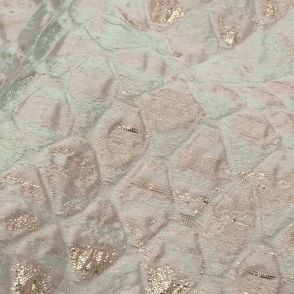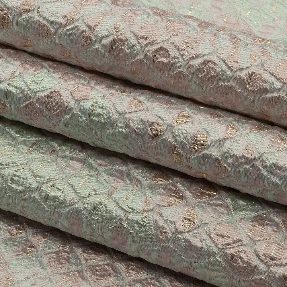 Metallic Gold, Seafoam Blue and Light Pink Abstracted Scales Luxury Brocade