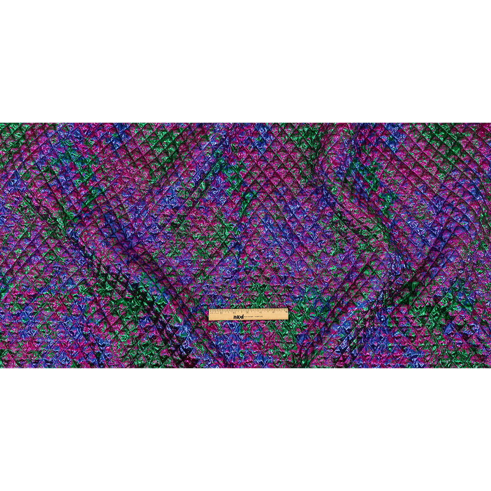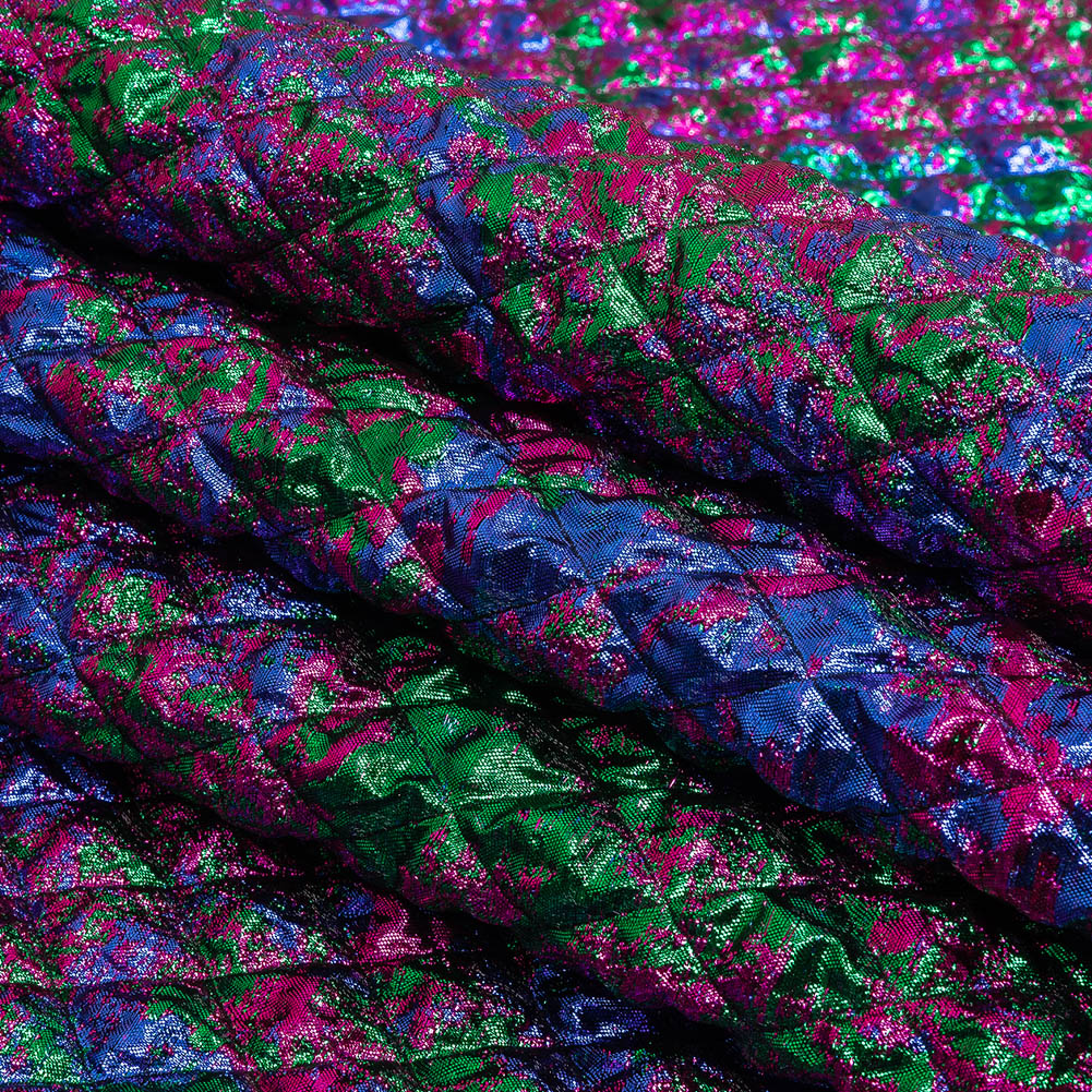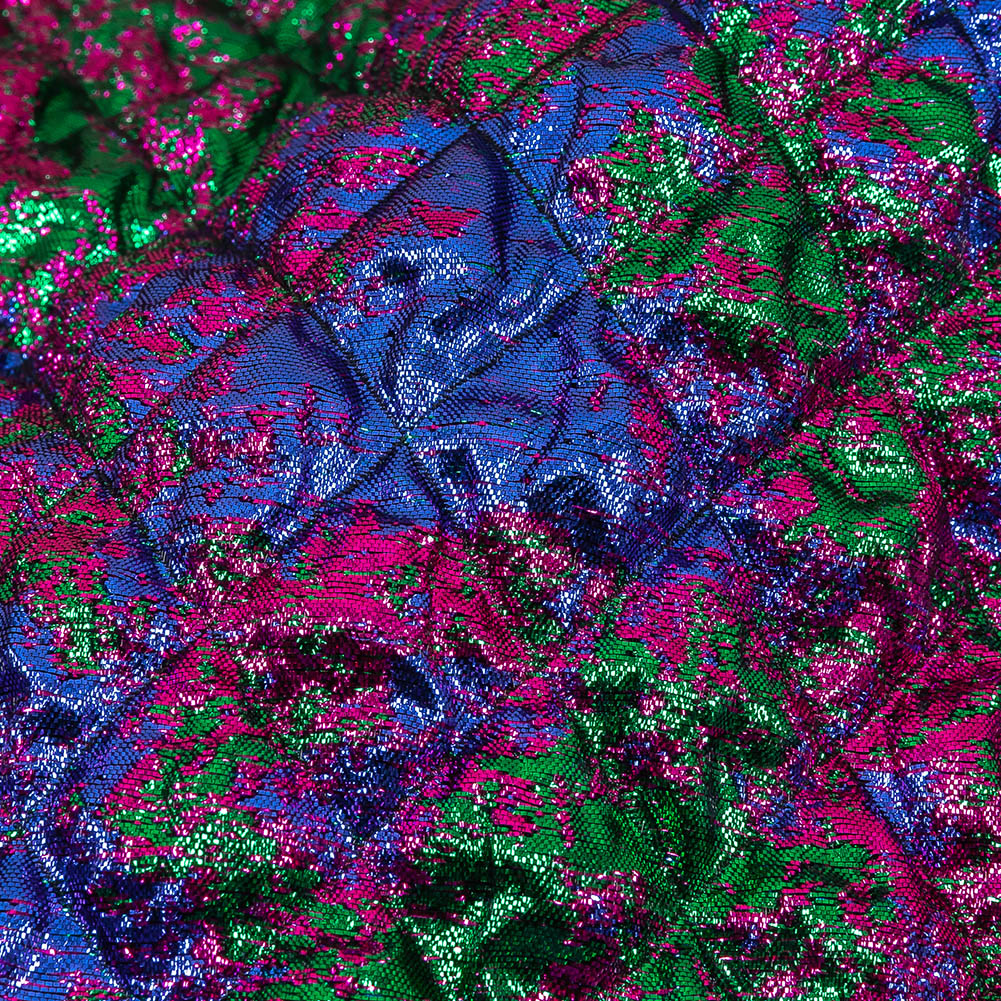 Metallic Green, Blue and Fuchsia Diamond Quilted Luxury Brocade