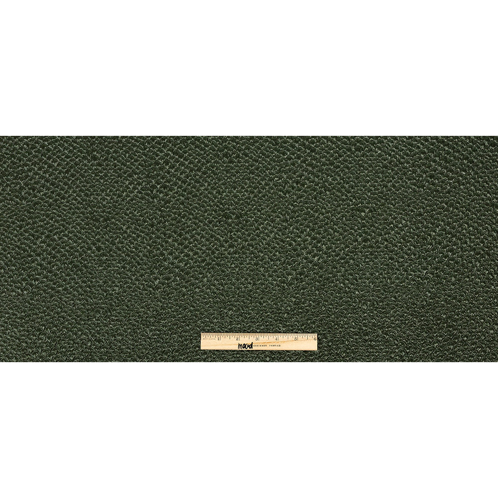 Our reptilian Metallic Green Dimensional Scallops Brocade will snake it's way into your heart. Glittering forest green dragon scales take form from the Jacquard weave of this brocade, while the reverse side is shadowed in shimmering black. The lightly crinkled back feels almost smooth in contrast to the bubbly scallops on the face. With a bouncy, voluminous drape, craft the evening gowns of legends, dream up a lightweight coat of scales, or form a simple dress that's wild all the while. Consider adding a lining to ensure full opacity or give additional strength for more tailored garments.