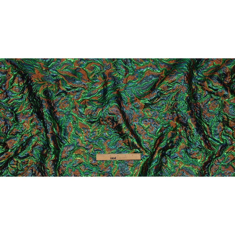 Metallic Green, Navy and Pumpkin Smoky Swirls Luxury Brocade